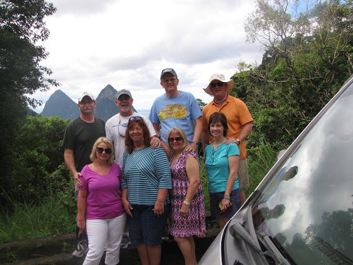 We decided to skip lunch and head straight back to the ship. We didn’t realize what a good decision that would turn out to be. While winding our way around the island we kept stopping for this and that. On the way back we didn’t stop for anything. Keep in mind how small the island is. The Pitons are on the other side from where the ship is docked, but still. These roads are West Virginia/England roads all over again. They are small, crooked and winding as hell. It took almost 1-1/2 hours to get back to the ship. All the relaxing, loosening up at the sauna, getting my massage, etc is so gone. I’m tight as a rubber band again from holding on winding through those mountain roads. We all would’ve lost our lunch if we had put food in our stomachs before heading back. Finally, finally we turned a corner and saw home. If we’d had the umph we’d have cheered! LOL Seriously though, Lawrence was great and we had a wonderful time seeing the island. He was a perfect host. It was a good day to have an island tour and stay out of the sun since most of us still looked fresh off the grill.