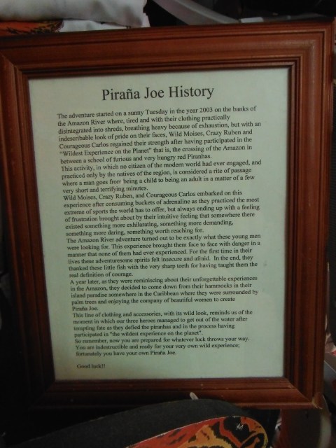 One of the other passengers had this really cool Piranha Joe’s t-shirt on we all really liked. How cool to find out there was a little shop in the duty free area that sold them. We all got one except Rick and Regina.