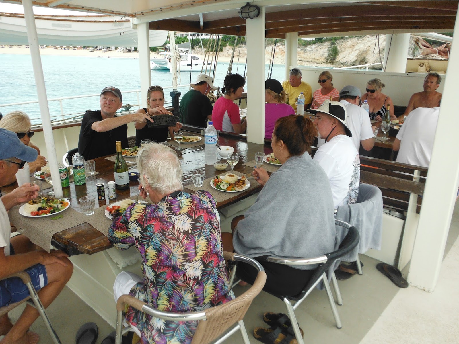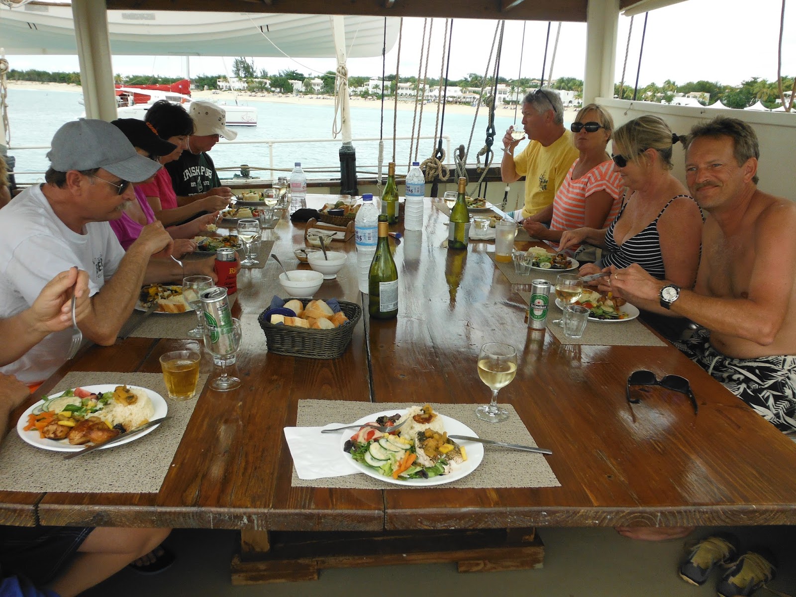 It was kind of beat up and neglected looking up close. Mirian said she sent a car for us. I don’t believe it. They just came across as very unorganized and disheveled people. While it was nice to be on the water, it was a little disappointing to us that they weren’t stopping at a good snerkling spot. Just a swimming spot. And apparently there wasn’t enough wind for sailing so he just motored around all day. Really not the same effect. But it was relaxing, the scenery was beautiful, the food was really good and the company was entertaining. So it was a good day, just not a fabulous day. Not an excursion we’d recommend or repeat. The ship had potential but was in desperate need of some TLC. It appeared their company was struggling. Not sure how much longer they’ll be in business. Regina accidentally got a glimpse of their living quarters trying to find the restroom. She was horrified at the condition saying there was stuff thrown everywhere and she didn’t know how the boat was afloat. Topside looked way better than down below. While they were nice people, be this will not be a high recommendation on tripadvisor.