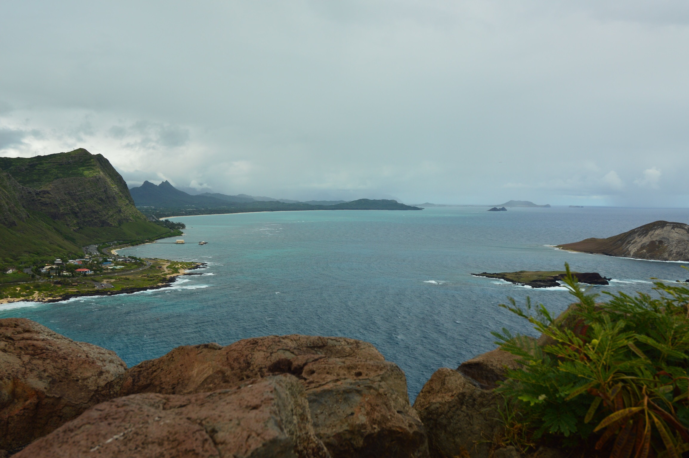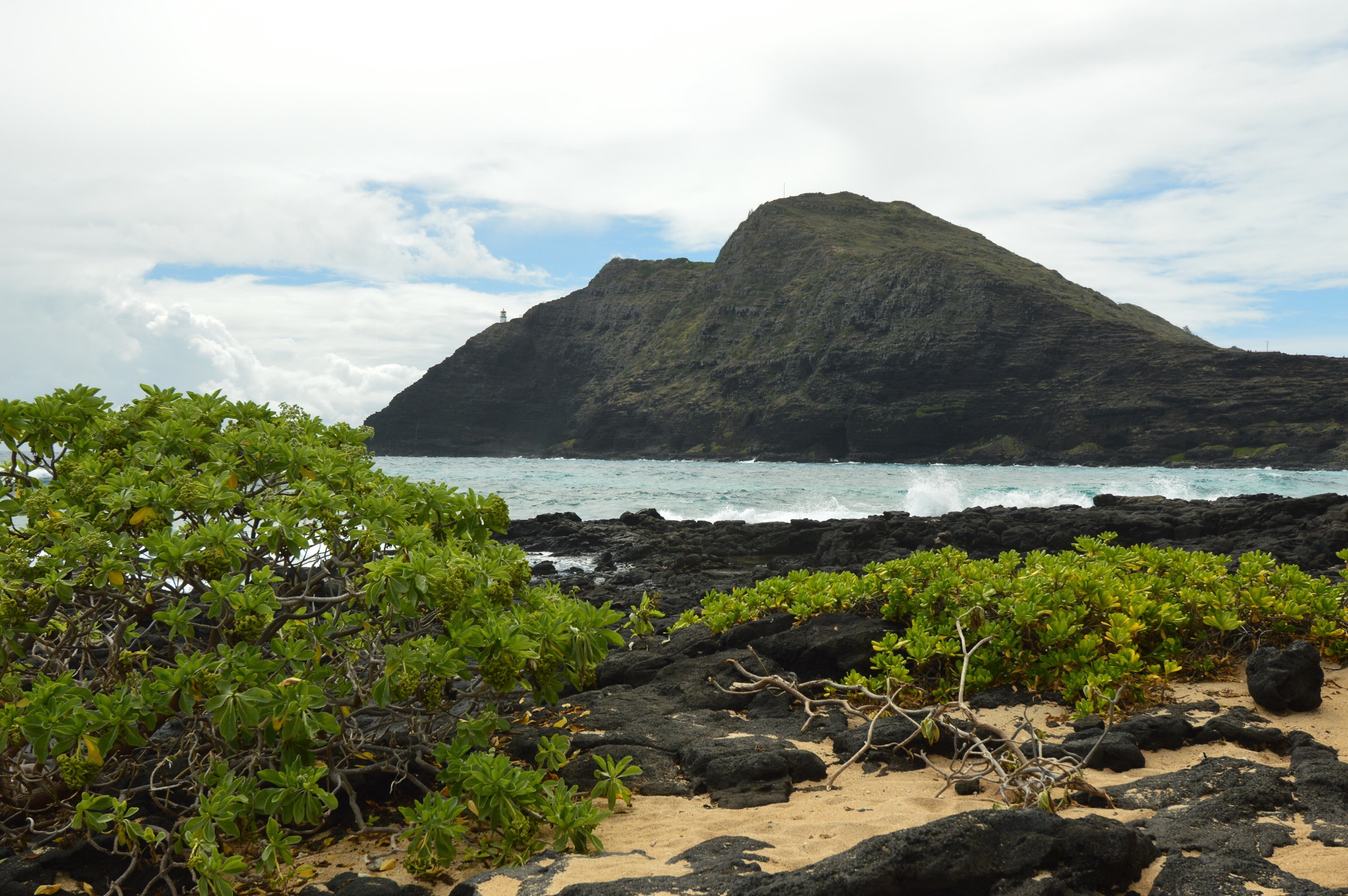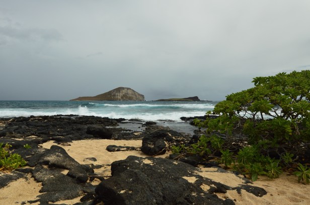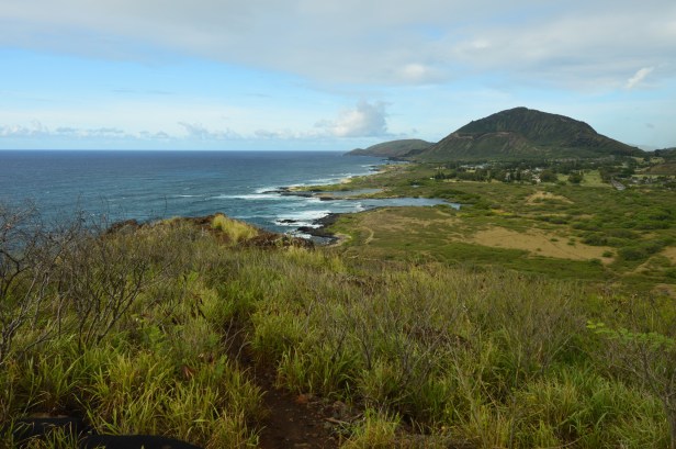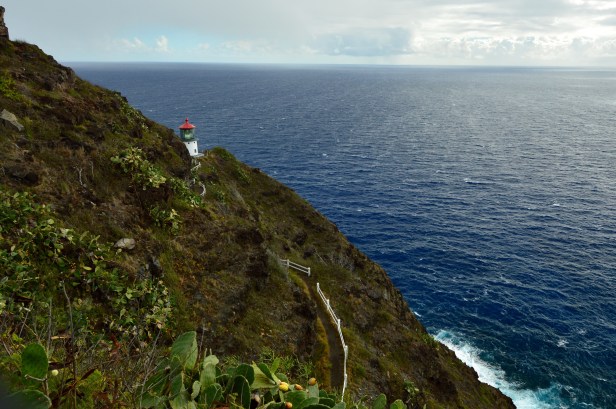 Another early morning today. Between our 20 hour day on Thursday, flying in to Honolulu yesterday and all our activities, we both died last night. Bob died earlier than I did but when I did I slept hard. So both of us were awake pretty early (considering the 6 hours time difference that’s not difficult the first few days) and we were up, dressed, grabbed a couple of breakfast sandwiches to go and were on our way to the lighthouse around 7am. Even with several scenic stops we were at the Makapu Lighthouse Trail before 8am. There were already a ton of cars there.