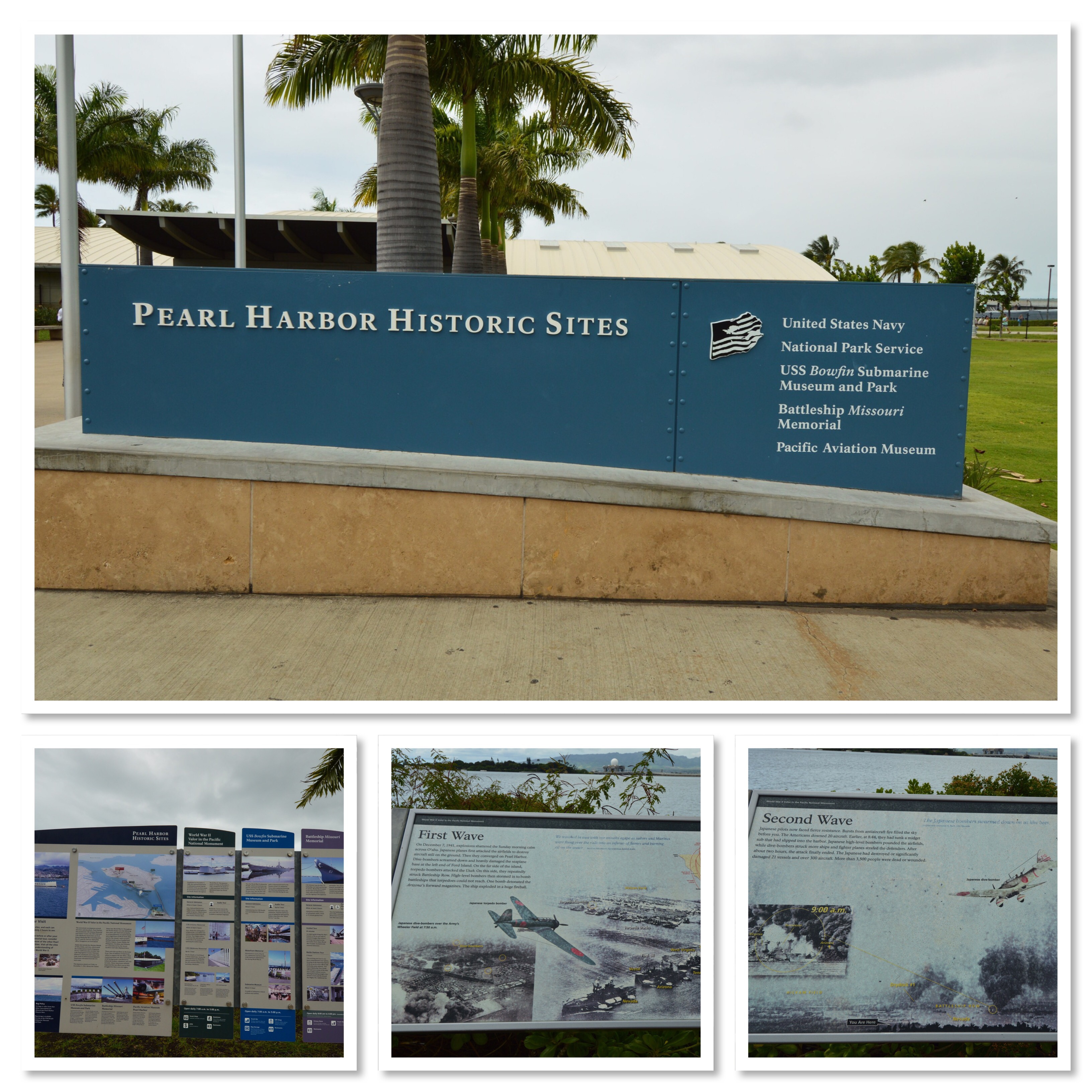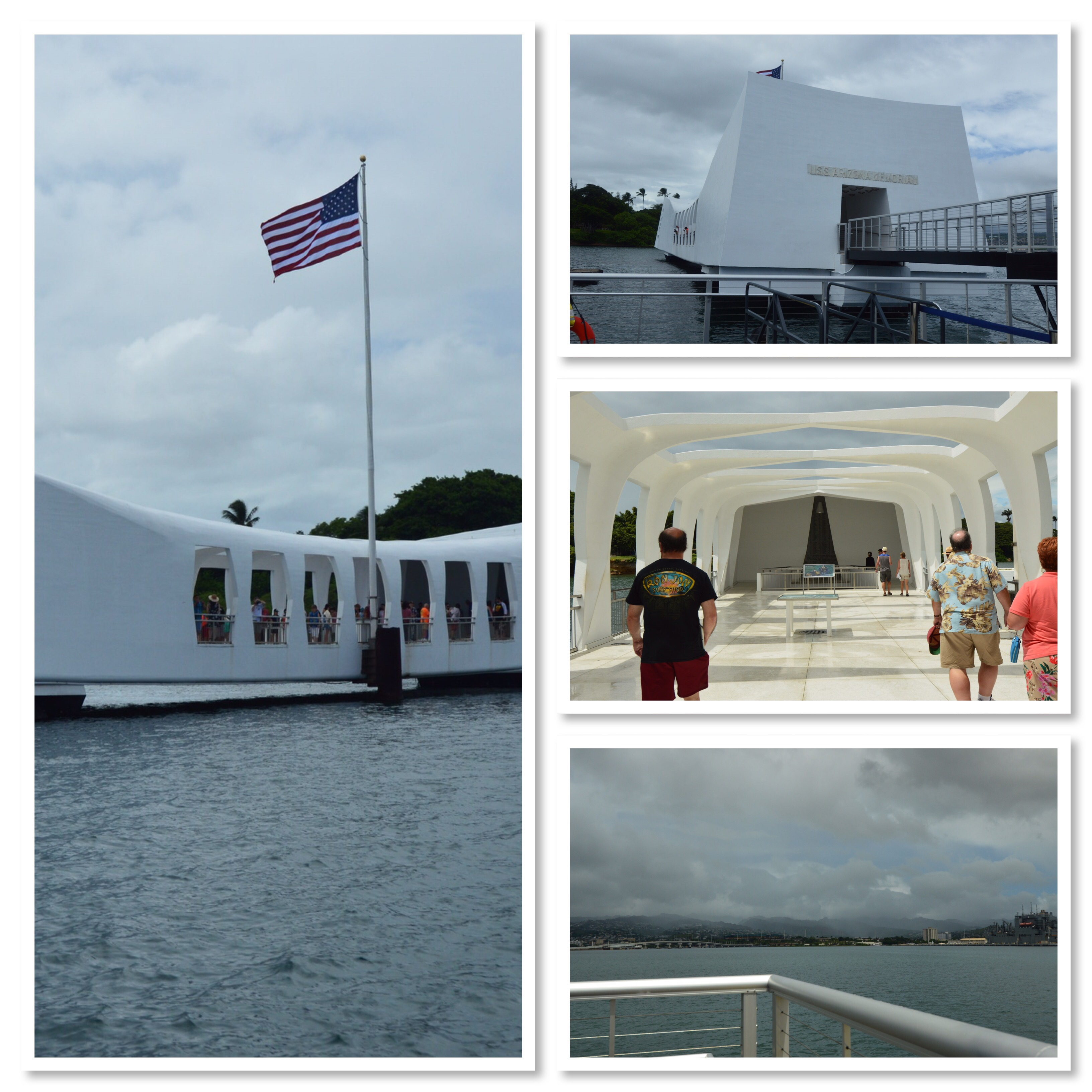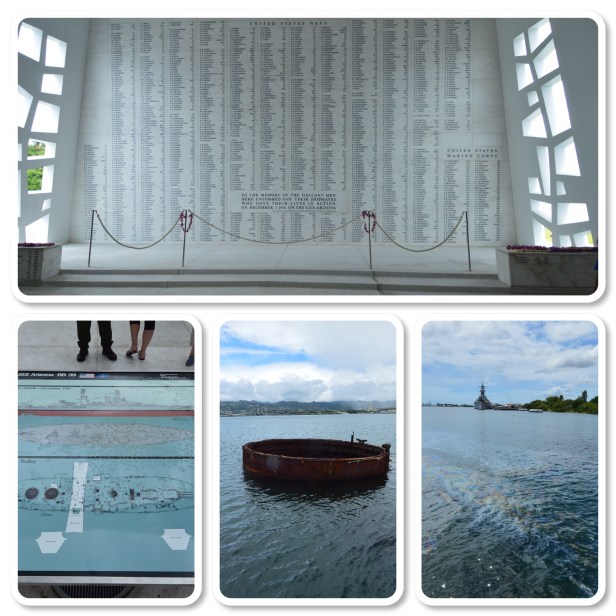 The Pearl Harbor Arizona Memorial was high on our bucket list while in Waikiki. It took about 45 minutes to navigate our way there and we found ourselves driving around the parking lots waiting for a spot to steal. I knew this would be sobering, I just didn’t realize how much so. They make everyone watch a 20 minute movie before boarding the shuttle out to the memorial. The movie is well done and very educational about the events of December 7, 1941. Even Bob learned a thing or two. I learned a lot. It’s a humbling experience. We spent a good couple of hours looking through the museum and reading about events leading up to that day, the day of and then recovering from the attack.