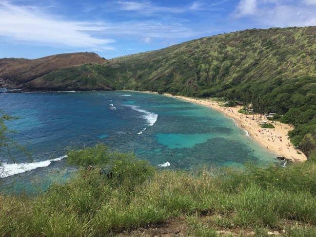 One of the places we stopped was Hanauma Bay – for the scenic overlook. Just for kicks, we had to take a look at the beach where the supposedly awesome snorkeling is. Huh, it didn’t look that crowded! At least not like we thought it would be. Certainly there were people on the beach and in the water but there was room for us too! LOL Sigh … So now we’re trying to figure out how to get that in before we leave too. If we had stuck with our original plan and gone this morning … but then we wouldn’t have done the lighthouse. Oh well, we’ll figure it out.