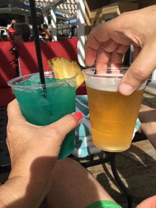 Finally up by the pool chilling with a cold one (Bob with a beer and I caved and ordered a Blue Hawaii – when in Rome, right?) we decided to have an early dinner and beat the crowds.