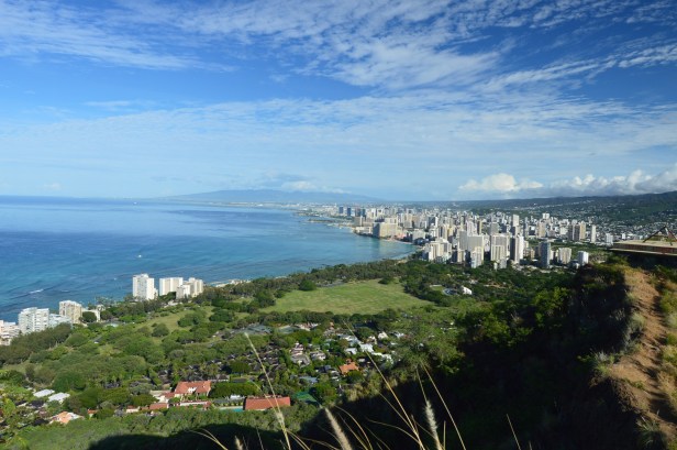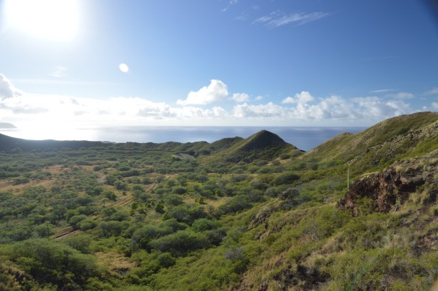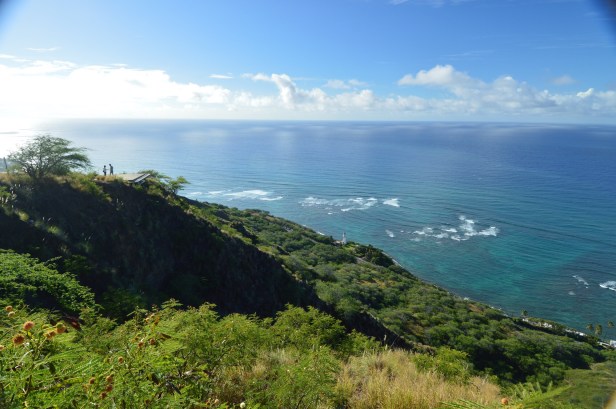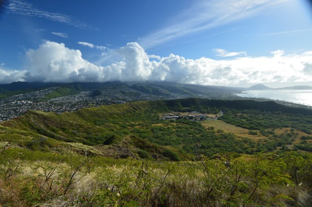 Diamond Head is only about 15 minutes from our hotel. We arrived at 7:30 (am, not pm) and could not believe how crowded it was. You would’ve thought it was mid afternoon. Seriously. It was so crowded the parking lot was completely full. We had to turn around and park at a scenic overlook about 1/4 mile away. Let’s just add some more steps to the day shall we? I think Bob was ready to throw in the towel at this point. He didn’t seem overly excited to be climbing the crater anyway. Funny how we compliment each other at times. I was the one pushing to just do it this time. We’d come this far and who knows when we’ll ever be back again. So we locked the car and prayed it would still be there (intact) when we returned. You just never know. So we paid our $1 entry fee and started walking.