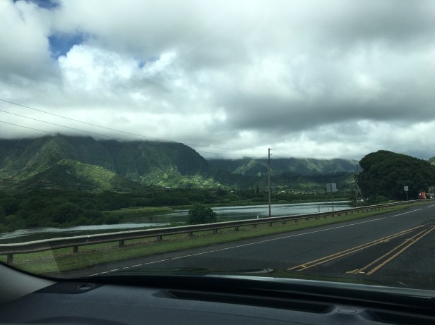 So our Plan A was to hike Diamond Head first thing this morning and drive to Hanauma Bay for snorkeling – provided we could get a late checkout, before heading to Haleiwa. That way we could do what we wanted to and still come back to the room to shower and check out. Unfortunately, the latest checkout time we could get was 12:30 and we just weren’t sure we could make that happen. So we went to Plan B – we just grabbed breakfast and checked out early. It sucked to have to drive north all grubby but I guess there are worse things. The biggest issue with that plan was we wouldn’t have the hotel beach towels for snorkeling. I guess we’ll have to buy some then.