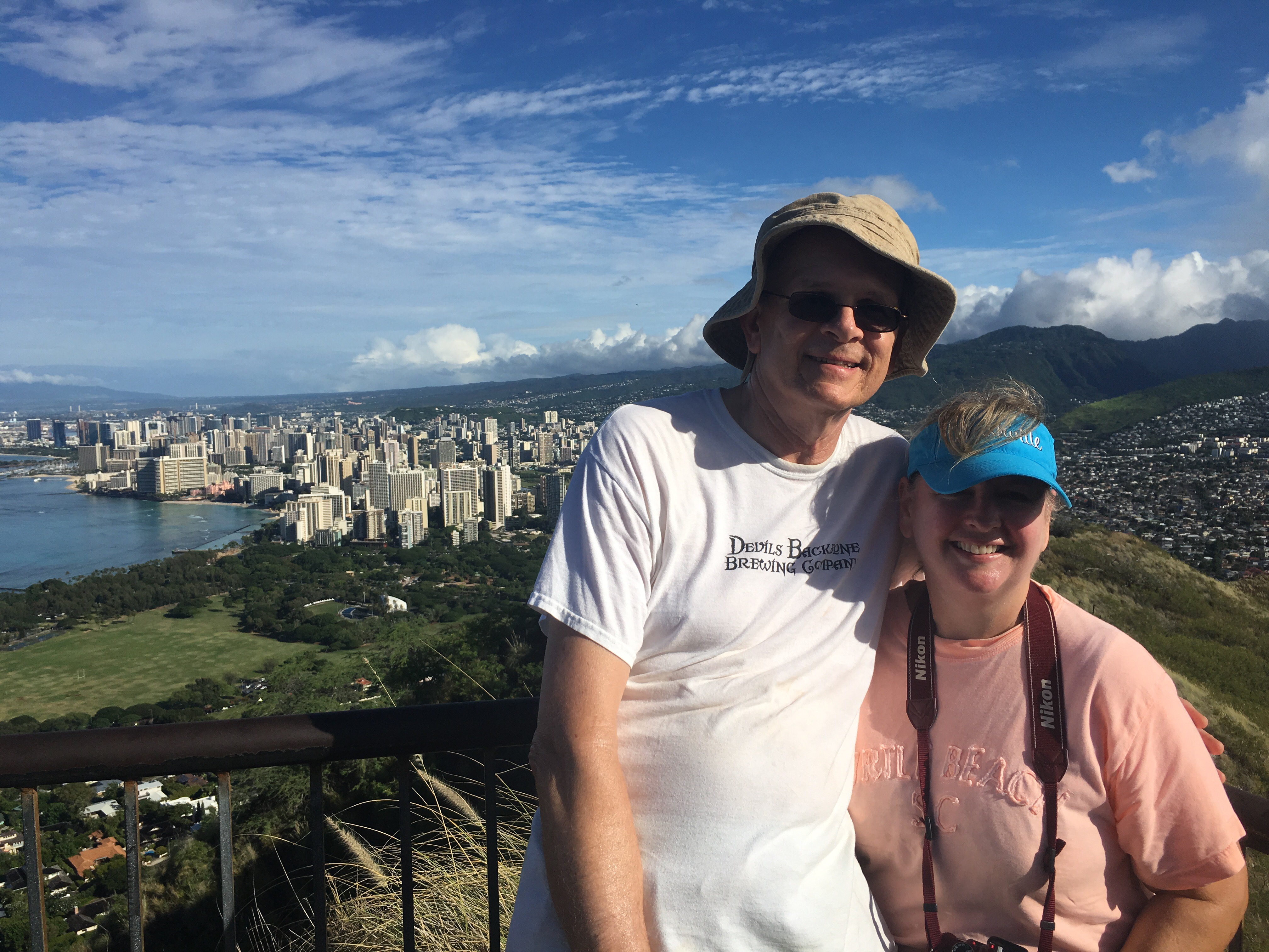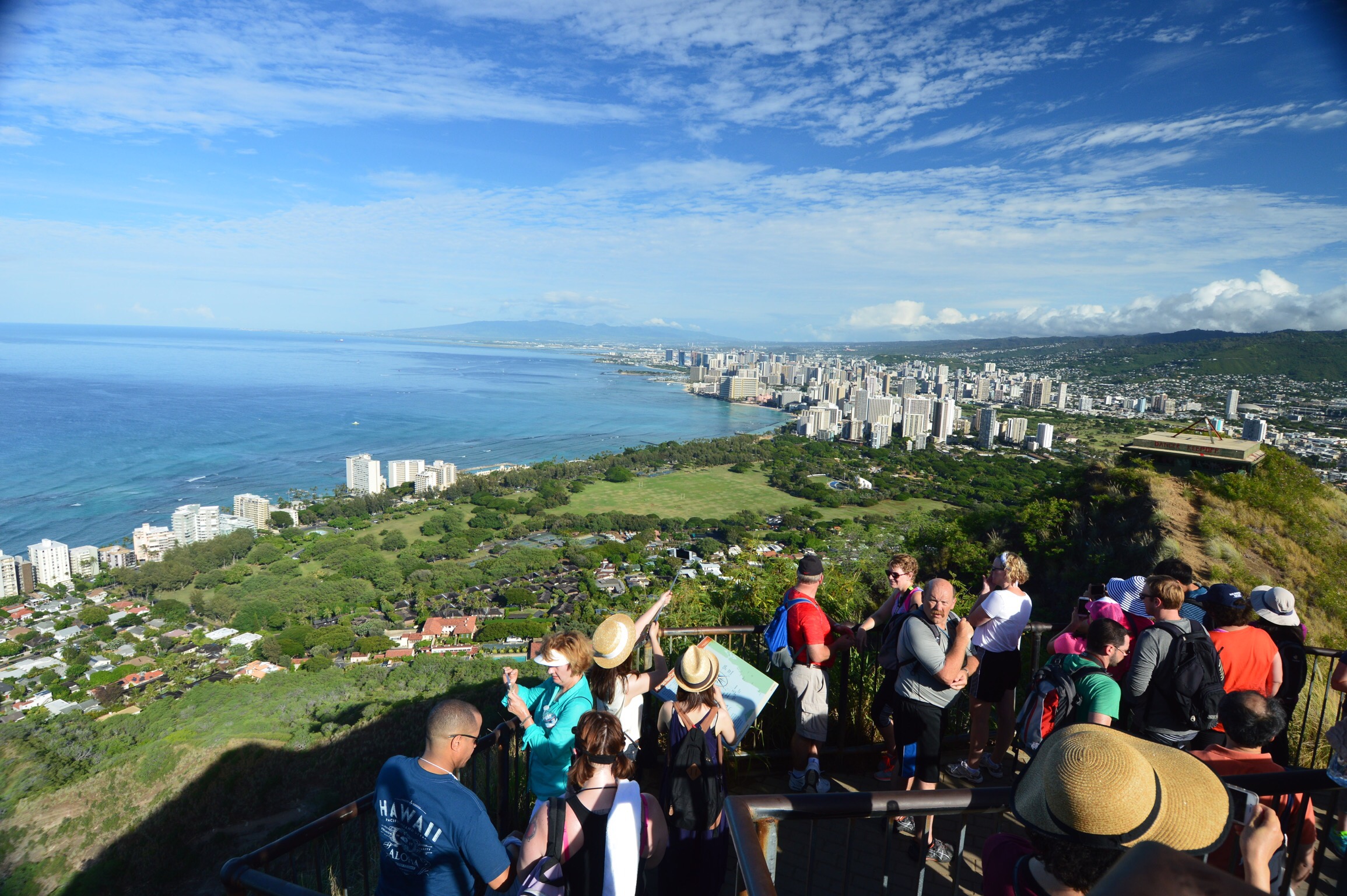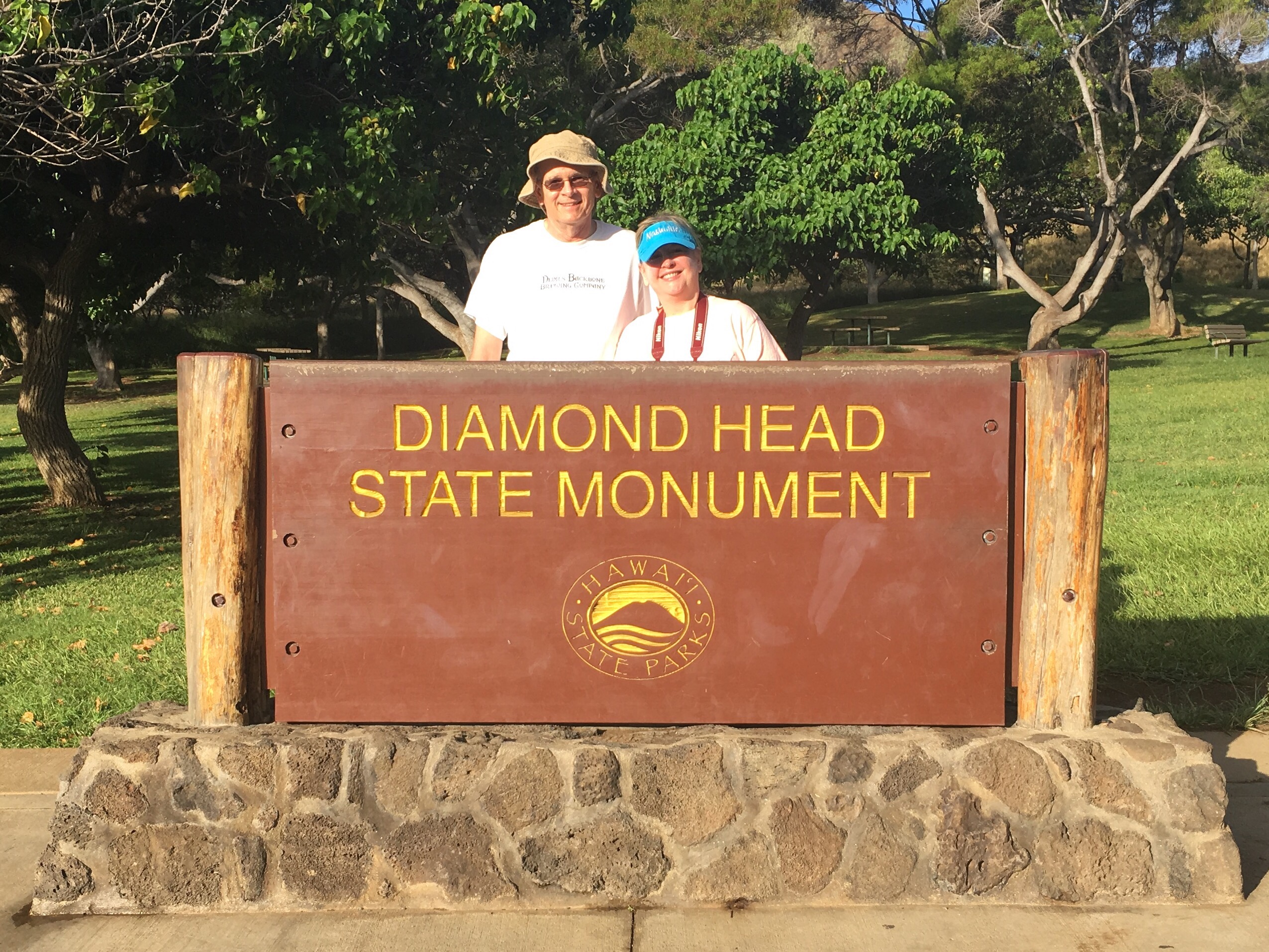 Diamond Head is only about 15 minutes from our hotel. We arrived at 7:30 (am, not pm) and could not believe how crowded it was. You would’ve thought it was mid afternoon. Seriously. It was so crowded the parking lot was completely full. We had to turn around and park at a scenic overlook about 1/4 mile away. Let’s just add some more steps to the day shall we? I think Bob was ready to throw in the towel at this point. He didn’t seem overly excited to be climbing the crater anyway. Funny how we compliment each other at times. I was the one pushing to just do it this time. We’d come this far and who knows when we’ll ever be back again. So we locked the car and prayed it would still be there (intact) when we returned. You just never know. So we paid our $1 entry fee and started walking.
