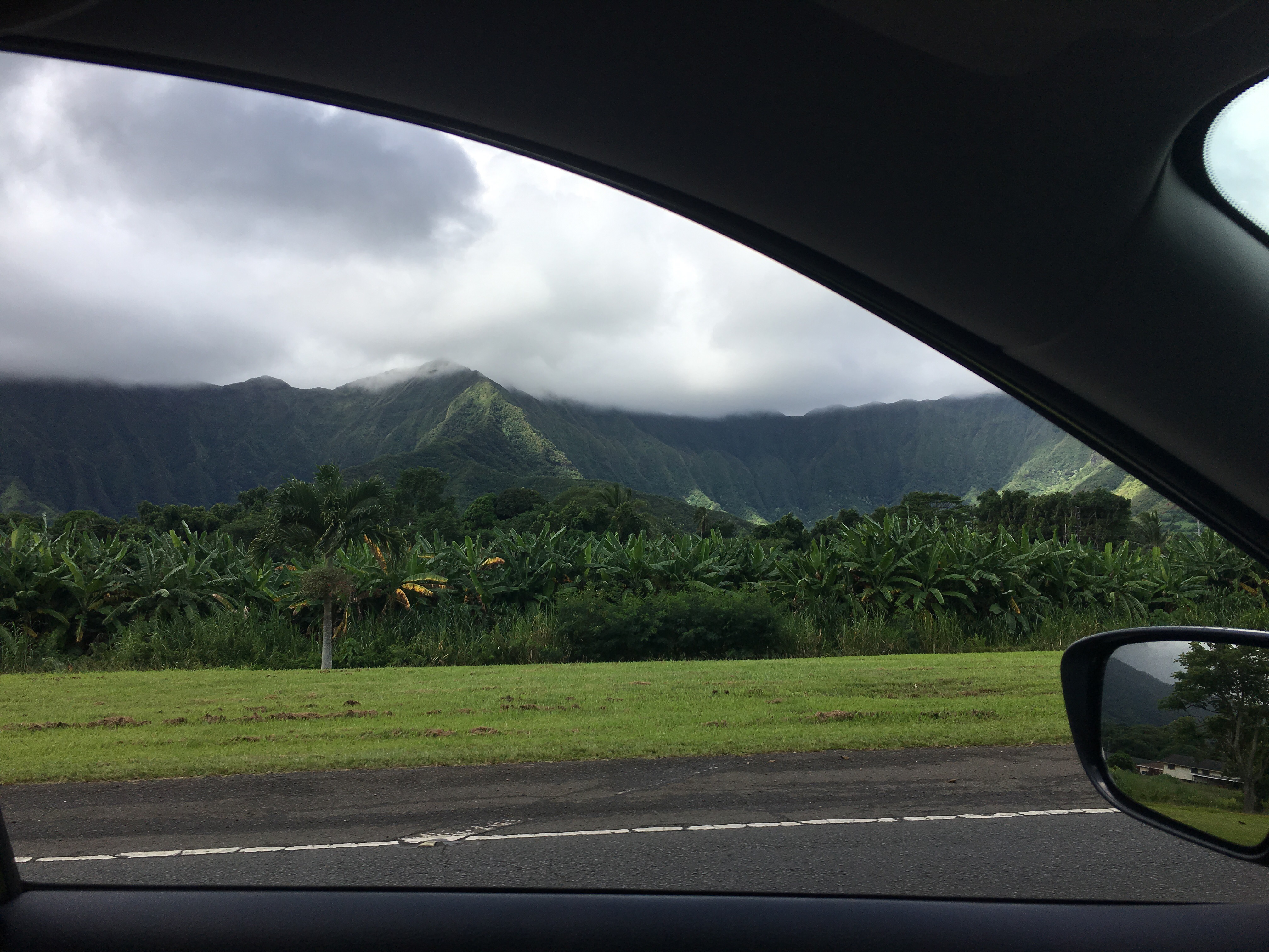 So our Plan A was to hike Diamond Head first thing this morning and drive to Hanauma Bay for snorkeling – provided we could get a late checkout, before heading to Haleiwa. That way we could do what we wanted to and still come back to the room to shower and check out. Unfortunately, the latest checkout time we could get was 12:30 and we just weren’t sure we could make that happen. So we went to Plan B – we just grabbed breakfast and checked out early. It sucked to have to drive north all grubby but I guess there are worse things. The biggest issue with that plan was we wouldn’t have the hotel beach towels for snorkeling. I guess we’ll have to buy some then.