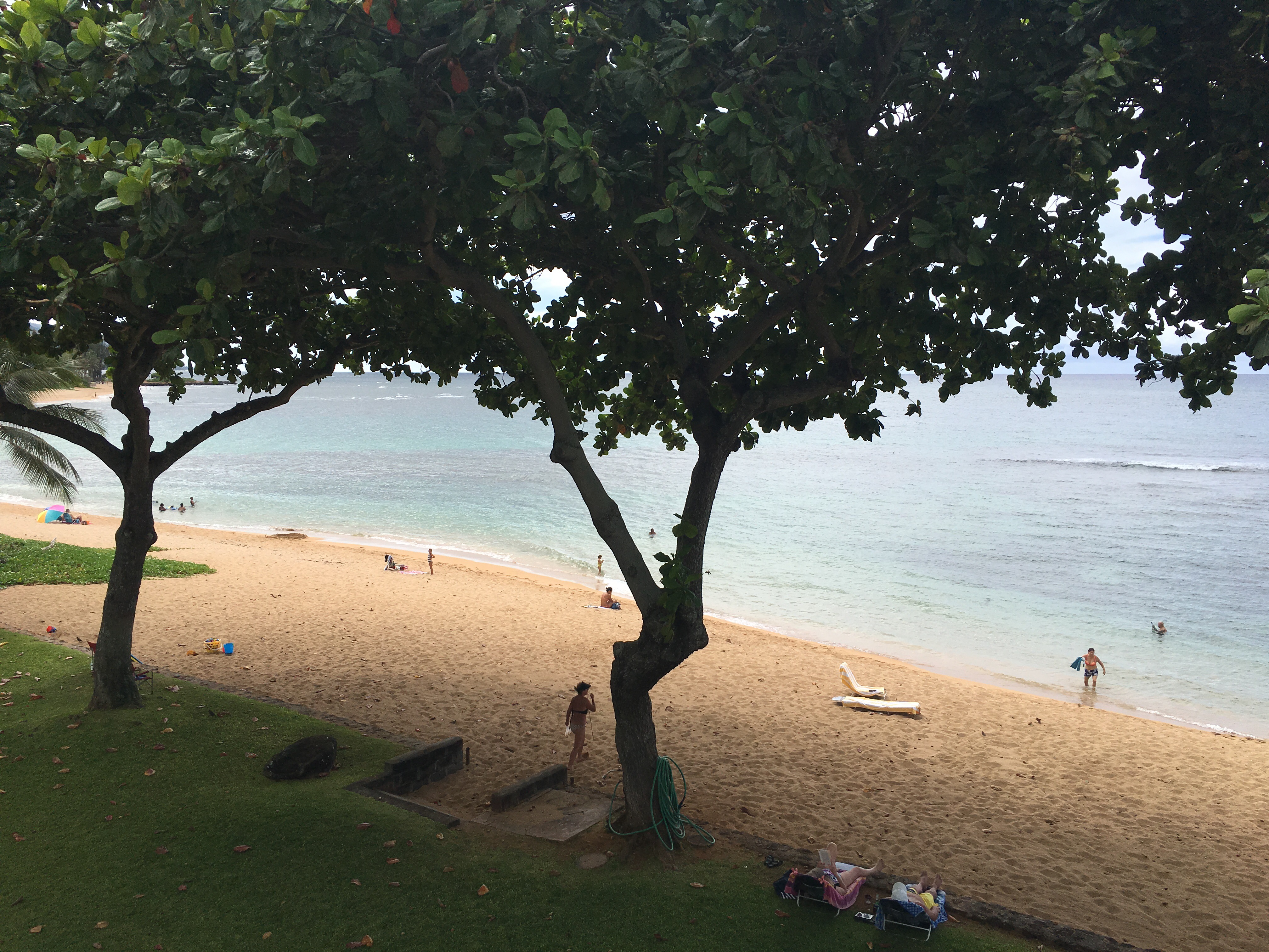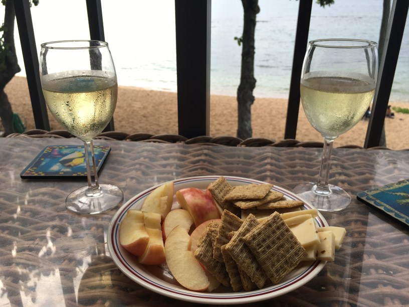 After getting cleaned up we enjoyed a wonderful snack out on the lanai people watching and listening to the waves. Oh and reading the entries in the guest book. Some of them are hilarious! People from all over the world have stayed in this condo. It’s so cool to read about what they did and enjoyed (or not) during their stay.