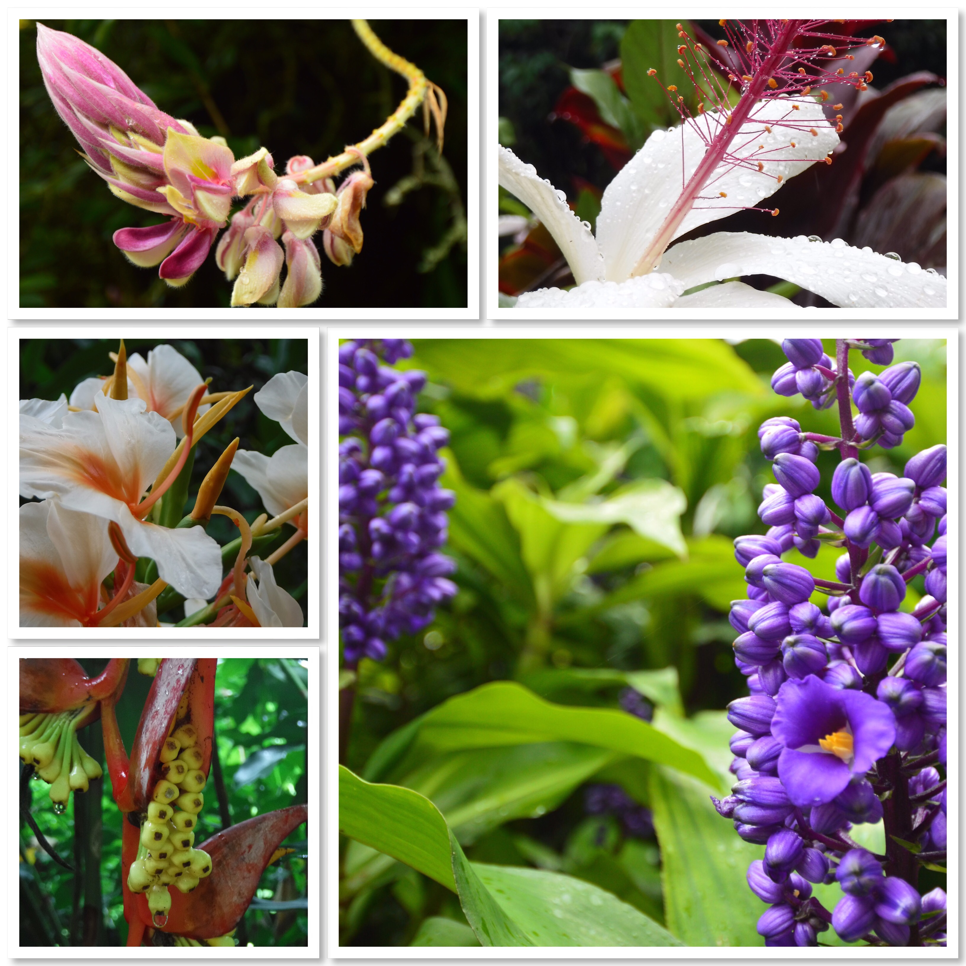 The falls were full and flowing abundantly. They actually rent life jackets for entering the water and swimming. Why someone would want to swim there I have no idea. The water is reddish brown from all the oxide in the dirt and sure wasn’t calling to us to take a dip. But lots of people just had to do it. To each his own. We just took a picture and checked the box. LOL On the way back (between raindrops) I enjoyed doing a little macro photography of all these tropical blooms.
