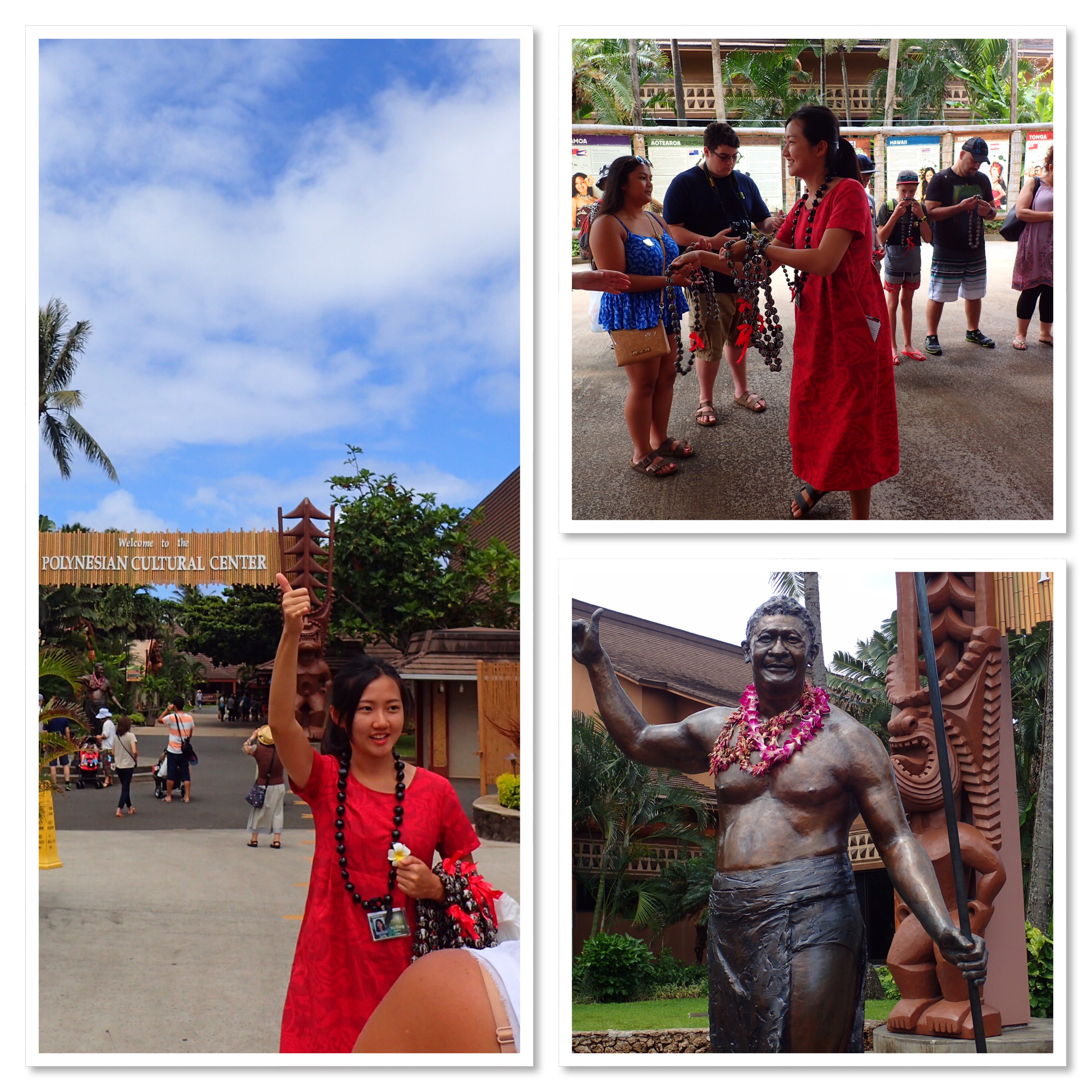 Our tour guide today was Yi Ting (pronounced E-ting), a student at Brigham Young University from Taiwan. She was absolutely precious! We so loved her personality. She’s only been in Hawaii for a year and has quite a decent grip on the English language but is still learning. There were a number of times you could see her searching for the appropriate word. Towards the end of the tour I don’t know if her brain was getting tired or if we were more comfortable with her or what, but it became something like playing a game of charades trying to help her find the word she was searching for. She was quite entertaining escorting us from island to island. We even got beaded leis to wear! Cool!