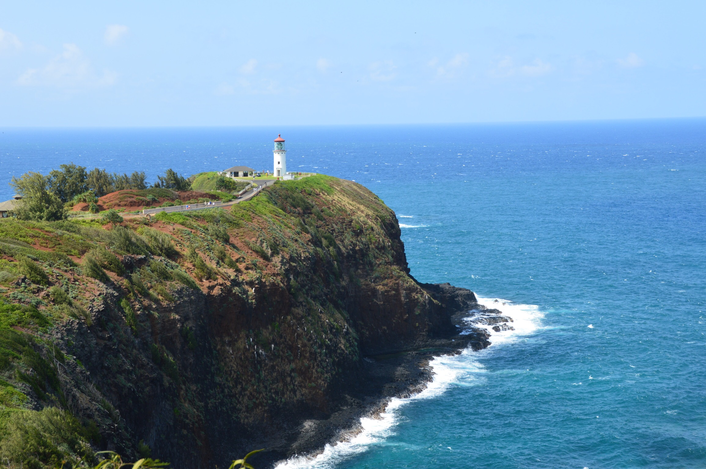 As on Oahu, the clouds hung low over the mountains and the coasts were under mostly blue skies. The waves looked a little rough but not as bad as the last two days in Haleiwa. On the way to Princeville where our condo is we passed the Kilheau Lighthouse and had to stop. So gorgeous! Hoping to catch a nice sunset at this spot.
