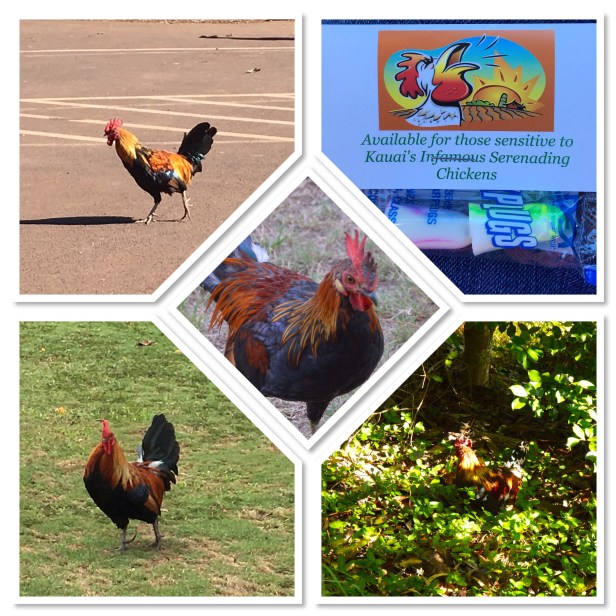 I’ve dubbed this little bugger (and that’s really not what I was calling him) “Karma.” Remember what I said about yesterday and the son of a guns crowing and waking Bob up? Ha Ha Ha. Guess who heard him this morning? And it’s not just one. Oh noooooo. They crow back and forth at each other having a bloody conversation! It’s a whole damn convention of roosters everywhere you go! Bob calls them Hawaii’s squirrels. We have squirrels everywhere. Hawaii has chickens everywhere. I’ll take the squirrels, they’re much quieter. About now I’m really feeling some chicken soup, chicken pot pie, fried chicken, chicken casserole … etc. You get my drift. Bob even wants a Kaua’i shirt with a chicken on it. Can you believe that crap? My husband wants to wear a bloody rooster! He saw a guy with a rooster on his shirt and has been on the hunt ever since. I never would’ve thought. On to the real journaling …