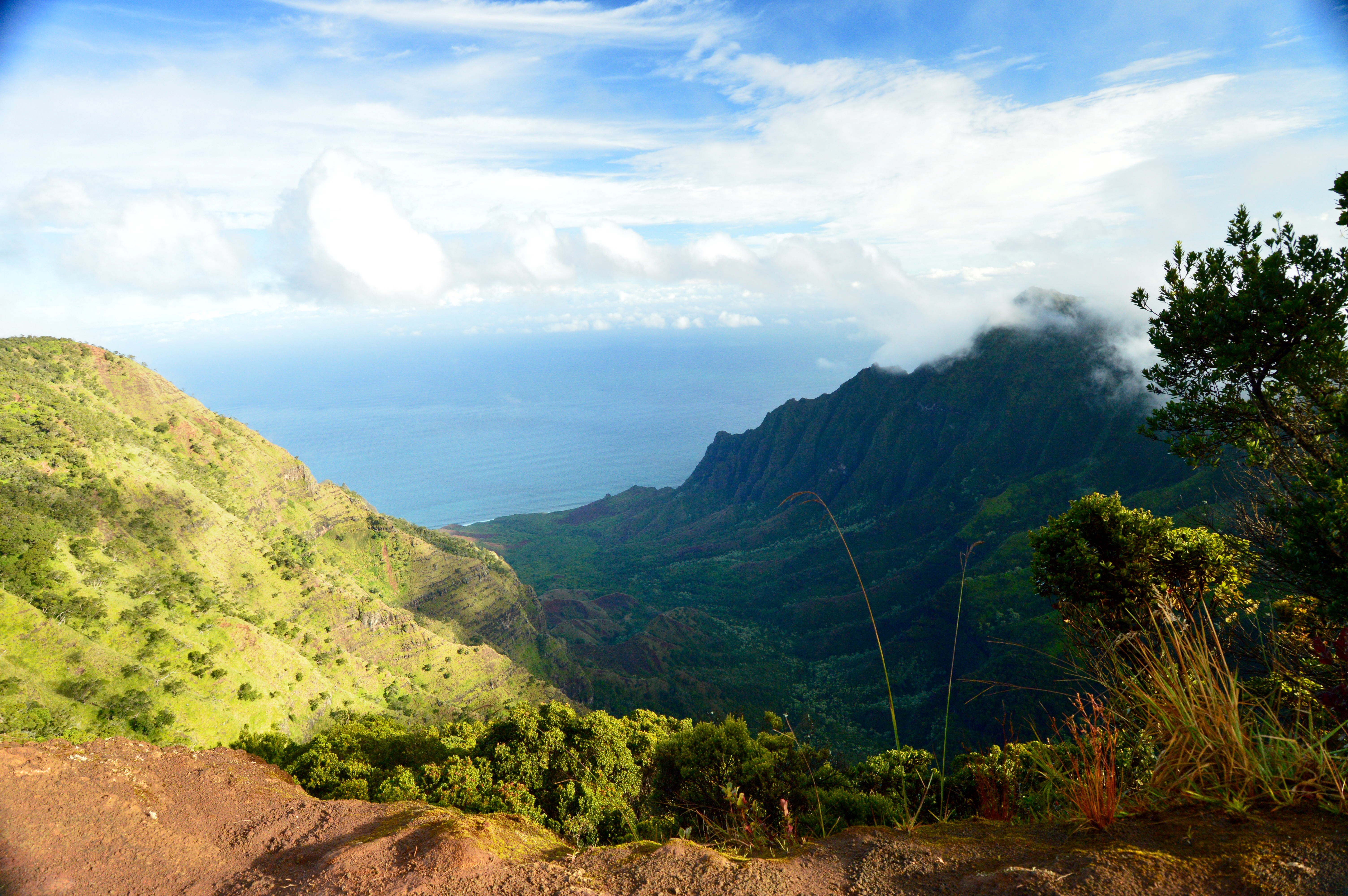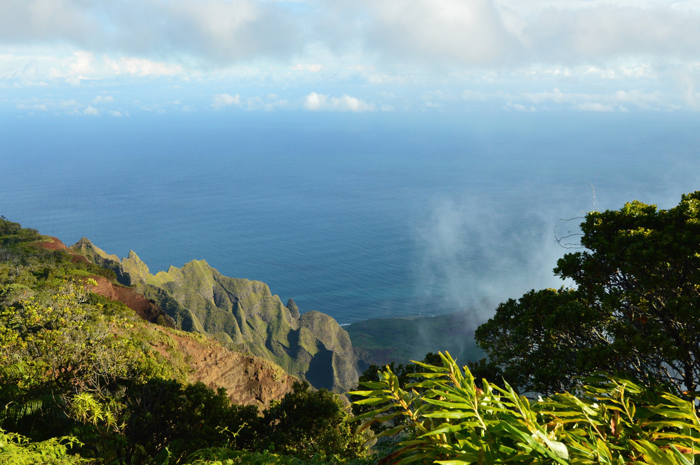 At this point Bob is done. He’s been at the wheel for the best part of the last two days. He’s ready to get back to the condo and plant for a few days. We both are. It was mid afternoon when we got back. Didn’t take much to unpack – we didn’t take much with us for only a night. We hung around, watching the sun and clouds to see if there was any possibility of color tonight – wasn’t looking good. Bob called and cancelled our boat tour of the Napoli Coast for Monday morning. Between the weather we’ve seen and what’s predicted, we’re kind of running scared. I have no desire to get out there and get sick because of being tossed around so much. So since we cancelled the boat tour, we caved and booked a helicopter tour for Wednesday morning. Exciting! I’ve never been on a helicopter before! I’m trying to get reservations to tour a chocolate farm Monday morning. We’ll see how that works out. By the time we did all that it was time to drive down into Hanalei to check out the pier, town, beach and restaurants. We were hoping Hanalei Beach would be the one that would make us want to stay. Sigh, it didn’t. We saw a couple of restaurants that looked crowded from so parked and got out to look at the menus. Son of a gun the first one we looked at had a wild caught shrimp salad with organic greens!! Jackpot!! We haven’t had a salad since we love home! I opted for a frou frou (is that how you spell that?) drink – Stay at Hanalei – with vodka, rum and fresh juices and Bob got a beer. Our server was a trip. Mickey from Denver, number 8 of 10 kids, is living her dream to live in Hawaii. She had a great laugh and happy, energetic personality. Salad was good too. Oh and by the way, it was raining again. LOL