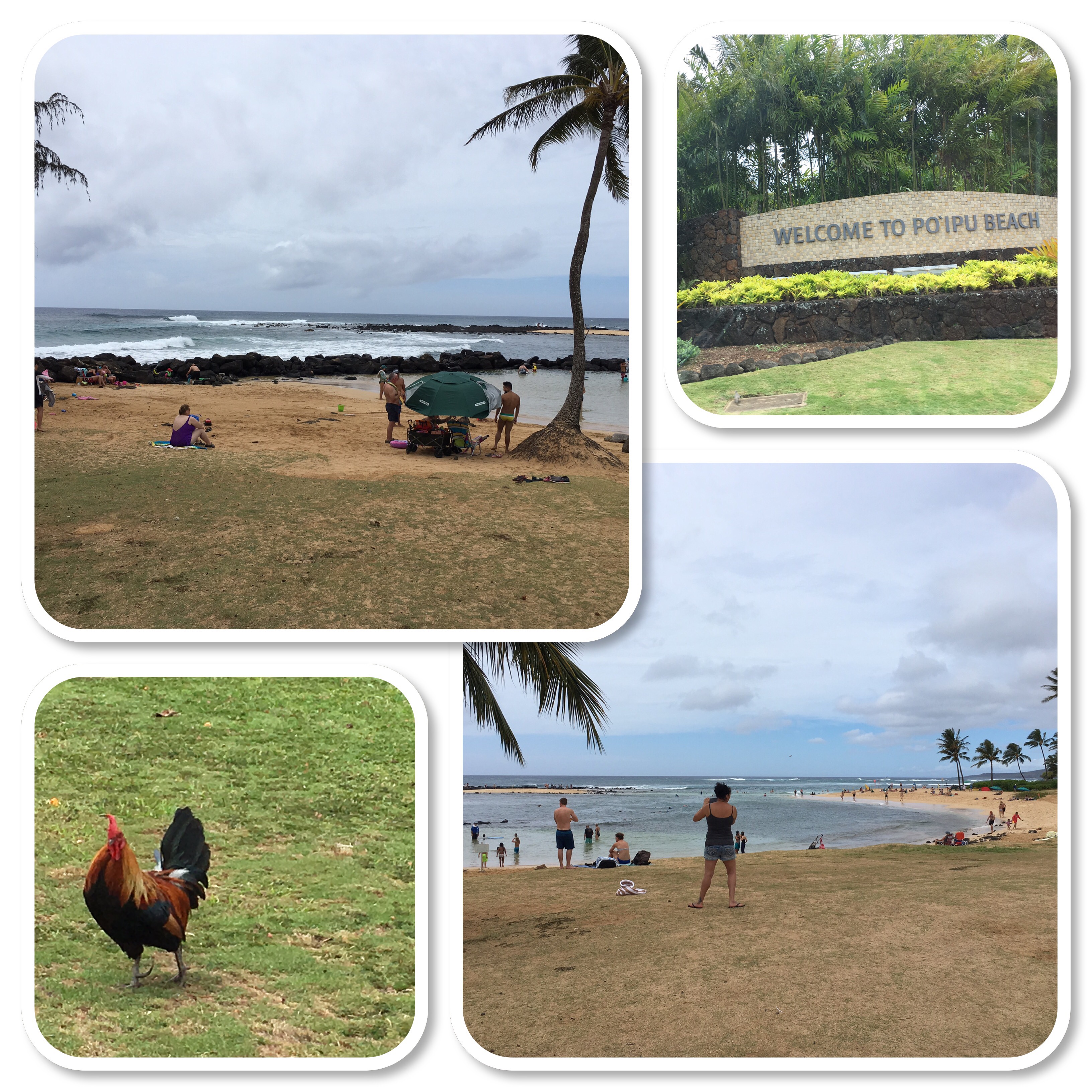 Bob placated me by going to Poipu (pronounced Poy-ee-poo) Beach just so we could say we’ve seen it. It’s the most popular beach down south and it’s supposed to be a hot snorkeling spot. So far we really haven’t seen any beaches that take our breath away like we thought we would. The beaches we’ve seen so far are either too rocky to swim, very narrow, very little and therefore very crowded, or the water just looks dirty. The Doc was right. Surfers are out all over the place. The surf is way too rough to get in any decent snorkeling so we’ve accepted that but it would be nice to find a beach to plant and relax now that we’ll be here for a few days. So we (or I) wanted to really see Poipu Beach for myself to see if it matched up with the image I had in my head. It didn’t. For it to be “the” swimming/snorkeling beach of the south it was pretty small for one and the beach itself was pretty narrow. Not a place I’d want to hang out for a week. I’m sure most of the time it’s much calmer than this. Like the Doc said, it’s been rough! It’s hard to see how rough the waves are in the pics but trust us they’re rough.