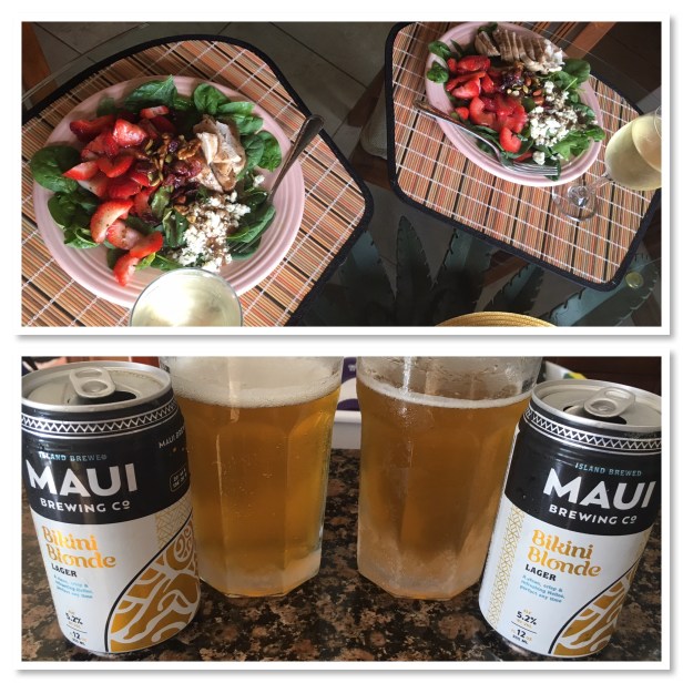We stopped by the market on the way home and got some ingredients for a simple salad for dinner. We haven’t had many salads since we left. We’re in dt’s. After a brewsky, we cleaned up and enjoyed that salad with a glass of wine while watching the sunset. Nice peaceful way to end a relaxing day.
