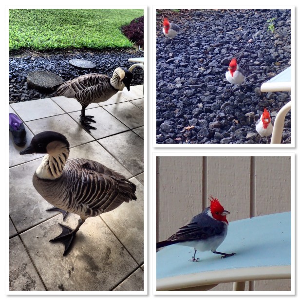 Our buddies were back this morning. I swear they’re used to being fed. They’re just too tame and come looking for something morning and evening. I caved and gave them a few pieces of bread this morning. The one guy takes it from my hand. Someone’s been feeding them. And then these beauties joined us this morning too. They’re called Red Crested Cardinals.