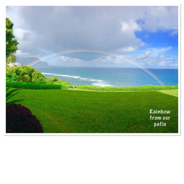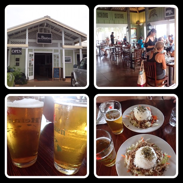 Aaaaand, even though we’d just sampled fresh fruit, fruit juice, hot chocolate and 20 different kinds of chocolate in the last three hours it was lunch time so we headed to the Lighthouse Bistro for lunch. LOL We got a simple rice bowl that hit the spot and just enjoyed the breeze for the next hour or so. We decided to drive down to Hanalei and look around at the shops to see if anything jumped out at us. Bob got a hat and I picked up a couple of small things but not really anything I couldn’t live without.