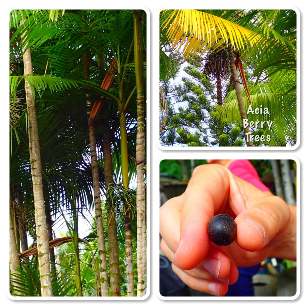 From there they took us on a tour of part of their farm. Cacao trees need to be protected by other trees, so they’re typically planted underneath bigger, stronger trees. That’s one reason they have so many other fruit trees on the farm. One of the first trees they introduced us to was an Acia Berry tree. I didn’t know you only use the skin of the Acia berry. Lots of work there.