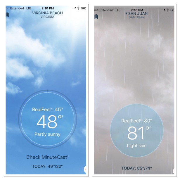 Thankfully, our flights were pretty uneventful except for some turbulence from Baltimore to San Juan. We arrived on time and our bags were waiting for us! Yah!! The humidity hit us like a wall. This is what we left and what we landed to: