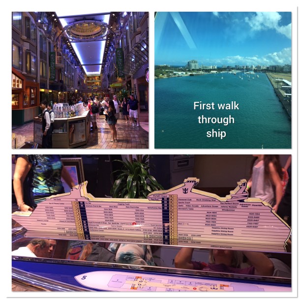 By the time we got on the ship, believe it or not, it was time to eat again!!! We knew the only thing open would be the buffet so that’s where we headed. The ship looked good even though it’s nearing 20 years old. Its decor is very different from the Celebrity Summit (which is the only other ship we’ve been on). Adventure of the Seas is close to the same size in length but quite a few decks taller and wider. It didn’t seem that much bigger to us though. The lunch buffet was ok. Some parts better than others. None of it was worth writing home about.