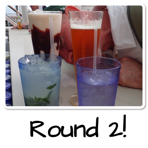 We headed back up to the room to pack up, check out and grab a taxi to the pier. It looked like a madhouse with all the taxis coming and going. People were leaving the ship and people were trying to get on the ship. It was crazy. But as many people as there were and all the commotion it could’ve been it was pretty well organized and believe it or not we were boarding the ship before noon. We were all prepared to be impressed by this ship. It’s significantly bigger than the Summit and a lot newer. (Summit was built in 2000 and holds about 2000 passengers – Reflection was built in 2012 and holds about 3000 passengers.) We started making our way to the buffet for some lunch and squirreled at the pool bar for Round 2 of this vacation! Sitting there talking to others who had done the same it’s amazing how much you have in common with so many people. There’s a “hookers” group on board. Several of them were sitting at the bar so I had to go talk to one of them. It’s a closed group and event so I couldn’t have joined if I’d wanted to but it’s very cool seeing Crocheters all over the ship.