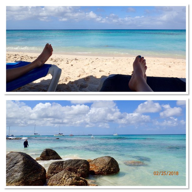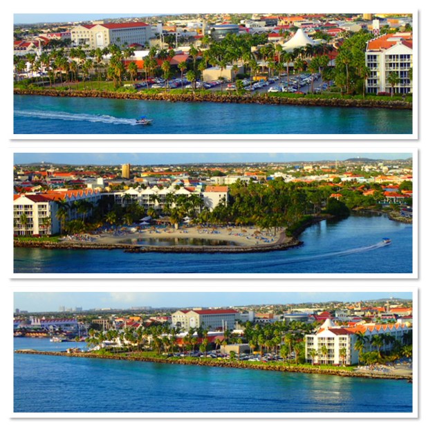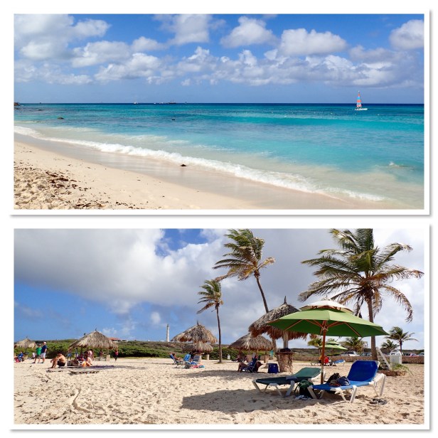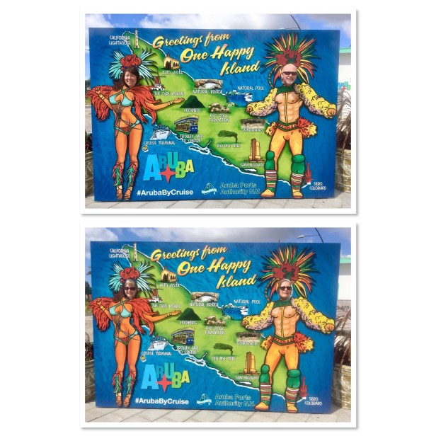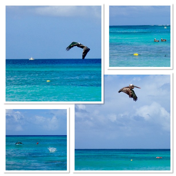Our morning started with room service for breakfast. We were meeting DE and Sarah on the gangway at 9:30 to grab a taxi and veg out at a beach today – hopefully one with snorkeling. It was if John was standing outside the port waiting for us. We piled into his SUV and off we went. We thought we were going to Palm Beach. From what we had been able to learn from YouTube videos, reviews and reading different articles online, most of the good snorkeling beaches didn’t have facilities or food. Kind of hard to go to a beach all day without those things. So we found info on one called Palm Beach located between a couple of resorts we planned to hit. Wasn’t meant to be. John said it was a beautiful beach but no fish there. He suggested Arashi Beach, which we had read about but said there we no facilities. John said, “Of course there are facilities! Anything you want!” LOL It was a little further so our cab fare went from $17 to $26. We could handle that. Before he took off we asked if he could pick us up at 3:00. “No problem! I’ll be here at 3:00.” We got there early enough there were plenty of chairs and umbrellas to choose from. By lunch time it was filling up. In the end Bob and I didn’t snorkel. DE and Sarah went out and said there were some fish but you kind of had to look for them. And the water was cold!! So my logic was, if the snorkeling was worth it I would suck it up and deal with cold water. Since it wasn’t, I didn’t. It really didn’t matter. We were sitting in the sand listening to the waves, watching the beautiful turquoise water and chilling. Our entertainment the entire time was watching the pelicans dive for fish. Not sure why that fascinates me so much but it does. I tried to capture it on film (so to speak) but since I can’t look at my pics until I get home I really don’t know what I managed to get. (I did get a couple of decent ones – Video 1 & Video 2) It turned out to be a beautiful day and well spent at the water’s edge. John was there right at 3:00 and we were back at the ship by 3:20. We got his number for future reference. (PS – John [taxi driver] also said the Flying Fishbowl was a great restaurant. Note to self: next time we’re overnight in Aruba we need to try that.)