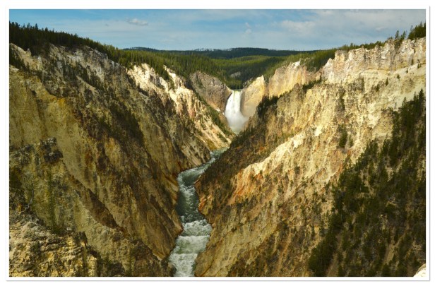 Here is a shot of the Brink of the Upper Falls. This spot sure will humble a body. The power behind this rush of water (40,000 gallons per second going over the lip). A still image doesn’t even come close to conveying that so there is a video (or two) to go with it.