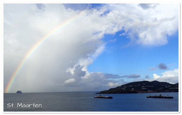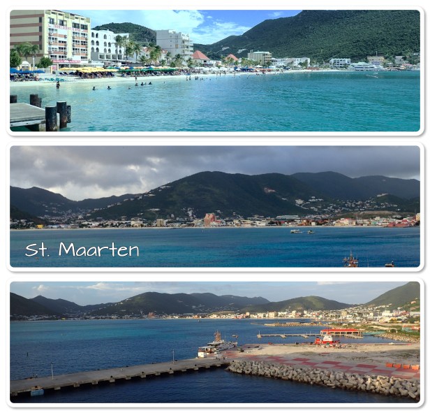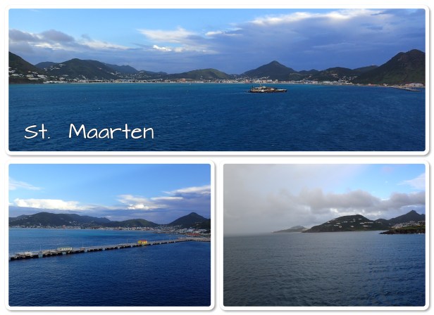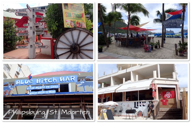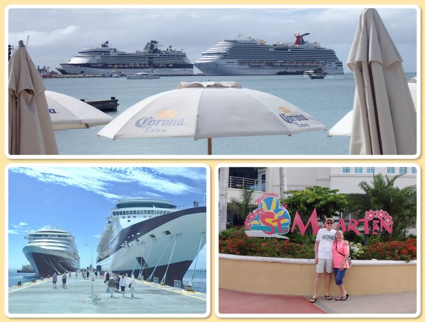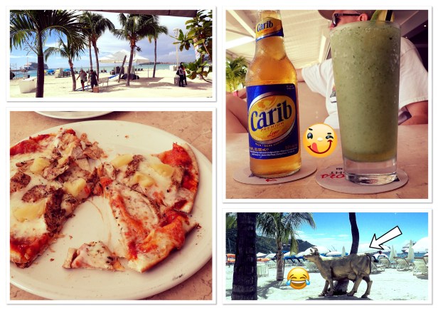 We walked around and did some shopping (mostly at the flea market and got some great finds. Some t-shirts, hats, jewelry and more will be coming home with us. 🙂 After walking through the streets looking the the Kangaroo Court (it’s gone, we did find where it used to be), we settled on a place to plant for a while (have a beverage, something to nosh on and just enjoy the sites). Oauichi’s was right on the boardwalk with a French owner that was simply splendid. He just pulled us in and catered to us. (We talked with him about the damage from the storms last year. His place was demolished – what the storm didn’t destroy looters did. Still a lot of the island – in fact the French side has basically done no rebuilding – has a long way to go. The boardwalk and the part that we saw looked pretty good. It was nearly a year before the cruise ships came back though. Since tourism is what keeps the island going that was tough.) I got a wonderful frozen mojito (that didn’t have much alcohol in it but it sure tasted good) and we ordered a margarita pizza with chicken. It hit the spot, as did another mojito. LOL By the time we finished it had warmed up nicely and we headed back to the ship to veg out the rest of the day by the pool – a little reading, a little napping, a little people watching. Eventually the music (and I use that word loosely) got to us and we went back to the room.