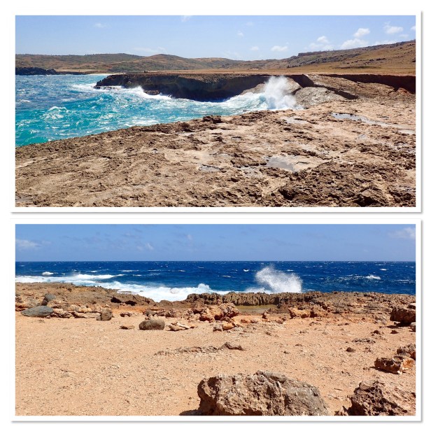 On the way to the Natural Bridge (which has fallen and so is no longer a bridge) and Baby Bridge we made a quick pit stop at the Bushiribana Gold Mill Ruins. The diversity of the landscape was fascinating. The island is only 20 miles long by 6 miles wide yet there is sandy beaches, rocky beaches, cliffs and rocks where the waves pound and lagoons and coves with water as smooth and clear as pools. There are areas that appear as desolate a desert, forests of cacti, low income homes and luxury homes. This was the first stop we noticed the stacked wishing rocks. People will stack the rocks and make wishes (we first saw this on Jackson Lake in Tetons National Park). I don’t know how effective it is but it sure makes for a cool picture. And yes, I even stacked my own to add to the landscape.
