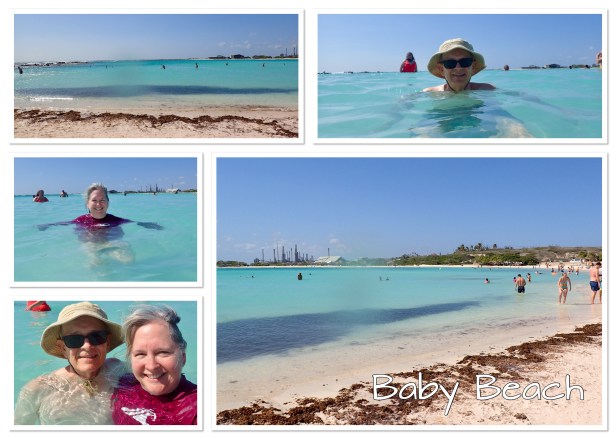 Our final stop was Baby Beach, which is supposed to be one of the most beautiful beaches on the island and reported to be good for snorkeling. It was a pretty beach and the water was beautiful but there was no snorkeling. Maybe on another day? In the lagoon the water is only 3′-6′ deep. We got about an hour to float and it was heaven.