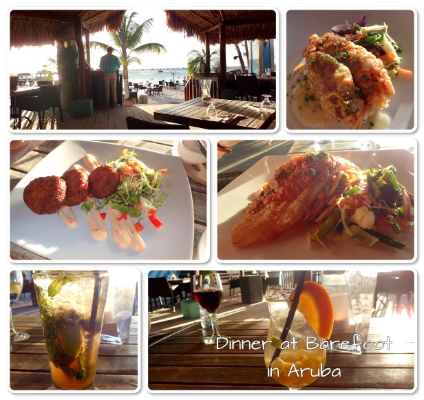 We initially had reservations for Barefoot Restaurant for the 21st because we were supposed to be in Aruba overnight but because of the mechanical glitch we lost that day. So even though we didn’t have reservations we decided to see if they could squeeze us in. They did, although all tables on the beach were booked so they seated us at one on the deck. The view was still beautiful and the food absolutely amazing. Bob got their grouper and Niki, our server, recommended the snapper so I went with that. Oh. My. Goodness. Mmmm, so good. There was also creme brûlée and key lime pie for dessert. We needed a crane to lift us out of there. We had been there before so knew what we were in for.