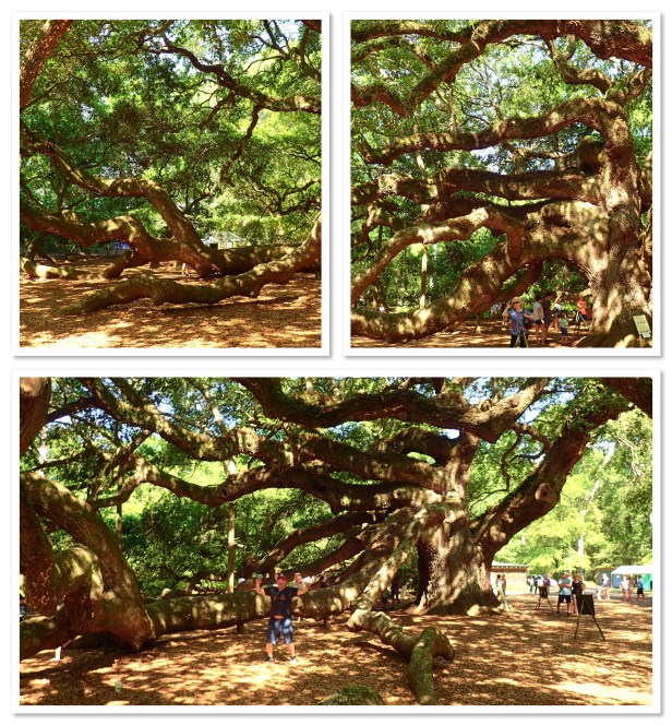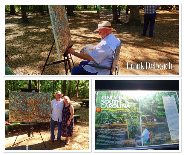 Our first stop this morning was Angel Oak Tree Park. Bob read about this tree and others had mentioned it. So we drove 30 minutes. To see a tree. And guess what? It was incredible!! We’ve never seen anything like it before. And there were tons of others visiting as well – as the photos show. It’s 500 years old (though others claim it could be 1500 years old). There was an artist there working on a piece – Frank DeLoach. We started talking to him and I asked him how they knew its age. He said a limb broke off a few years ago and they sent it to some scientist in Nashville who is an expert at those things. So, I guess they do know! LOL