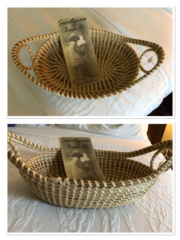 On the porch of the small gift shop was Ms. Adeline with her display of beautiful handmade sweetgrass baskets displayed. She and her handiwork came highly recommended by Frank. I had been eyeing these beautiful pieces of artwork since we arrived and we finally caved this morning. I am bringing home this amazing basket with me! You can read more about these works of art and their history here.