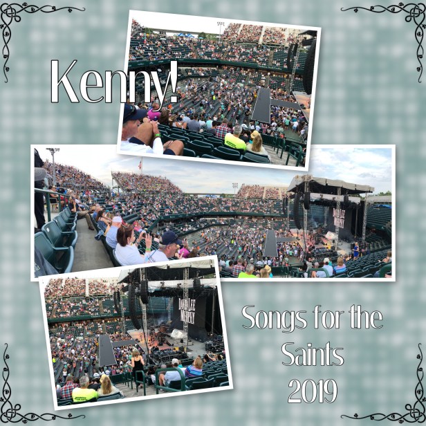 This arena in Charleston is a tennis stage. It’s small. Holding only about 10,000 seats, it was probably about 40% less when you take out the area blocked off for staging. The only time we’ve seen Kenny in a venue this small was Hard Rock Cafe in Vegas, and that’s set up totally different. There wasn’t a bad seat in this place. In the end, we loved this show. Kenny was excited about being here. The energy the fans gave back to him was unlike anything I’ve ever seen before with so few people. Kenny’s shows are ALWAYS high energy – more so than any other show. They’re just different. Always have been. It was simply amazing. And he did shake it up a bit tonight – slowing it down to play “Old Blue Chair” unplugged and even did “There Goes My Life,” which he hasn’t done in years (still can’t see him perform that and not get choked up and the tears fall). We left feeling so not Kenny’d out now and excited about seeing him again. This show is at the top of our list.