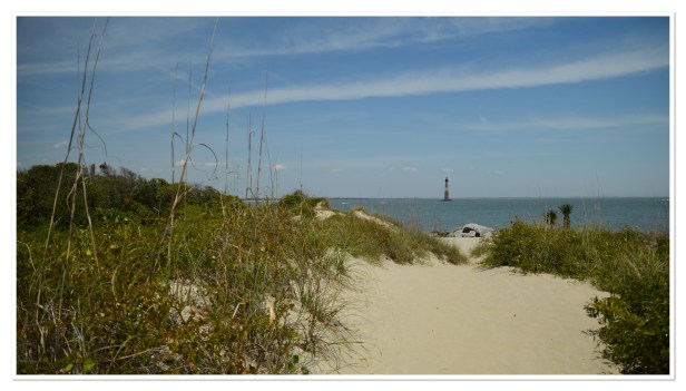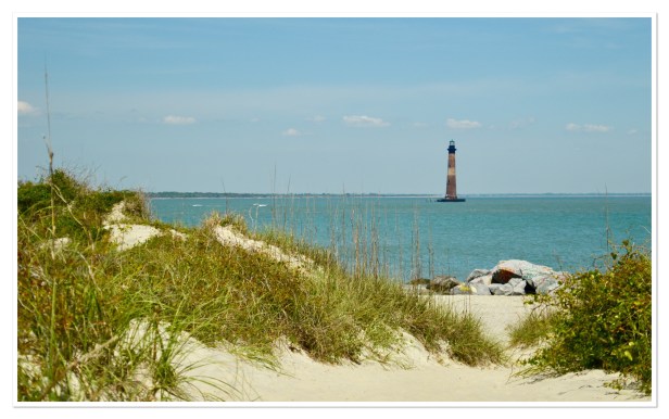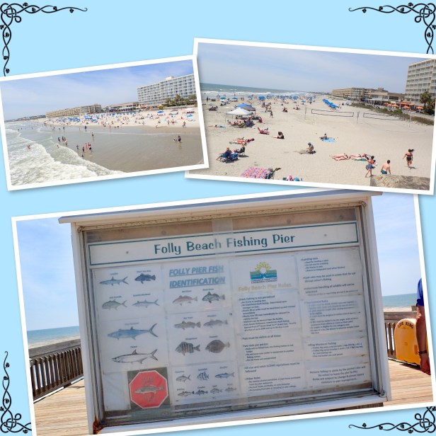 Our next stop was the Morris Island Lighthouse by Folly Beach but we needed lunch first so we picked a place on the pier to grab a bite. It was beautiful. The sun was shining, a warm breeze was blowing and people were everywhere enjoying the gorgeous weather. After lunch we walked the pier and grabbed a few photos of the beach. Even at the end of April it was hopping. I’m sure that water was cold but there were a few people braving it and some surfers on boards waiting for waves.