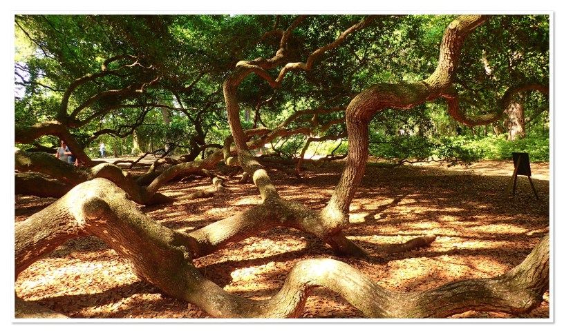 Our first stop this morning was Angel Oak Tree Park. Bob read about this tree and others had mentioned it. So we drove 30 minutes. To see a tree. And guess what? It was incredible!! We’ve never seen anything like it before. And there were tons of others visiting as well – as the photos show. It’s 500 years old (though others claim it could be 1500 years old). There was an artist there working on a piece – Frank DeLoach. We started talking to him and I asked him how they knew its age. He said a limb broke off a few years ago and they sent it to some scientist in Nashville who is an expert at those things. So, I guess they do know! LOL