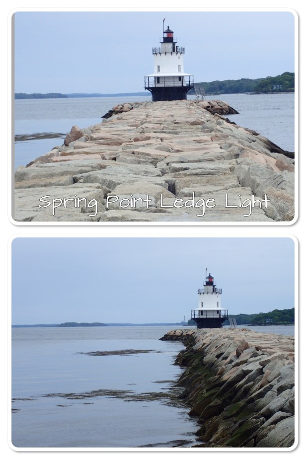 We had a leisurely morning, sleeping in and going to breakfast 8:30-9. Didn’t leave the hotel until around 10am and it was already a light drizzle. The two lighthouses we were looking at today was Bug Lighthouse (aka Portland Breakwater Lighthouse) and Spring Point Ledge Lighthouse. They were only about 6 miles away and very close together. It was spitting rain but we were happy with the pics anyway.