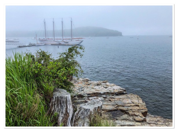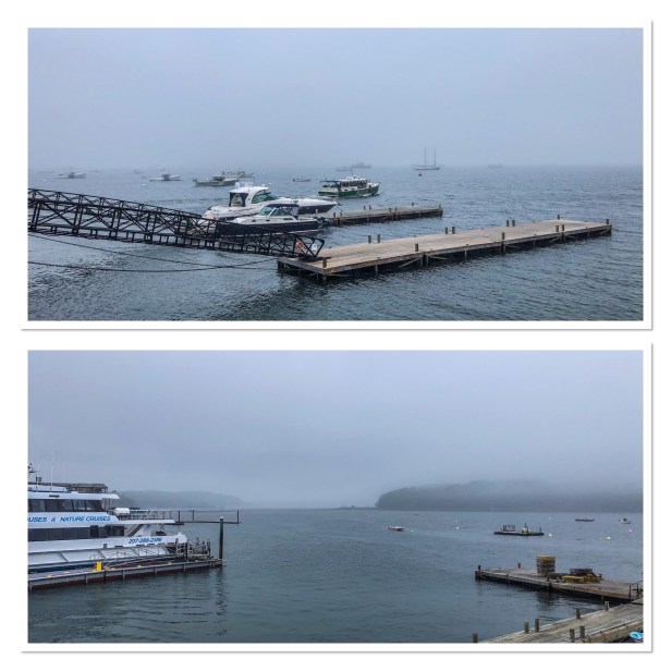 Thursday – Beautiful fog greeted us yet again this morning which canceled our Lighthouse Boat tour again. Disappointed, but nothing anyone can do about the weather so we just went to Plan B – drove into the park again to see if there were any cool fog shots from Cadillac Mountain. Unlike yesterday, the fog was worse inland than on the coast so after driving a little ways we turned around and came back to town. There were a few more things we wanted to pick up (contributing to the local economy) so we walked around town – love this little town. Where would you imagine our footsteps took us? Hmmmmm, there IS a brewery in town. It’s noon somewhere right?