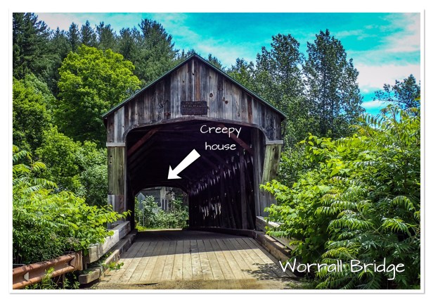 Going back the way we came, through the bridge and over the gravel road, we were only ten minutes or so from Worrall Bridge. I’m telling you, these roads around here are horrendous. Vermont has some major road issues and there is road work every flippin where you go. I had already been thinking before we left the hotel I was done with bridges and that feeling intensified as the morning went on. And then we saw Worrall Bridge. It’s not in as bad of shape as some we’ve seen but totally overgrown and not looking impressive at all. Since there wasn’t a spot on this side to stop and get a decent shot we drove through it (like we’ve done on a lot of them). As we came out on the other side I noticed what I thought was an abandoned house on the left. Then I saw the car in the driveway. “Someone lives there?” I said to Bob. Wooooow. He turned the car around and I wouldn’t even get out of the car to take a picture. In my mind whoever was in there had a shotgun pointed at us. I didn’t care about “composing a shot” in that moment. Told Bob to gun it and get the hell out of here. It gave me the heebie jeebies. When we got across and I jumped out to snap the picture I had to laugh because you can see the house through the bridge on the other side. Okay, officially done. Bob said, “but the other bridge on your list isn’t far.” “I don’t care. I’m done with bridges.” We headed to Harpoon Brewery. LOL