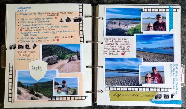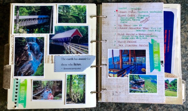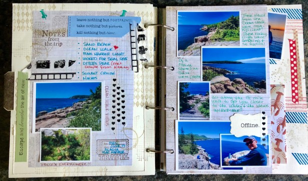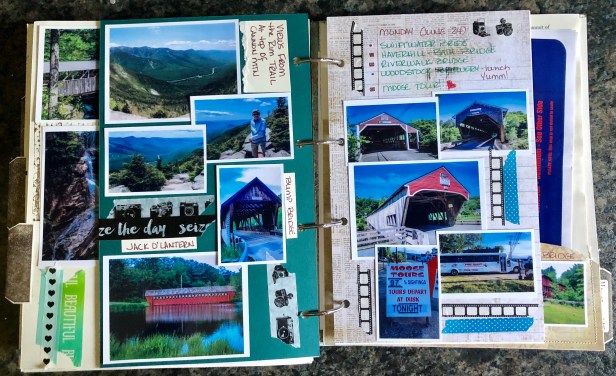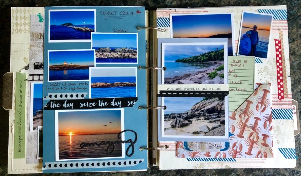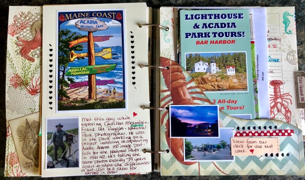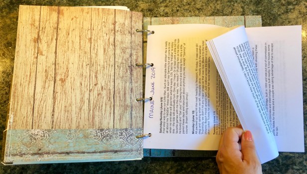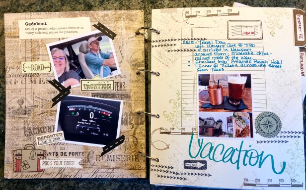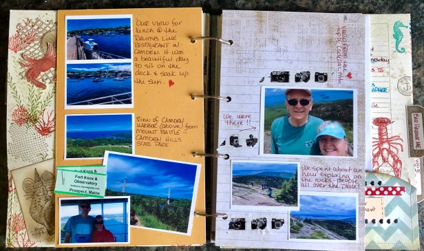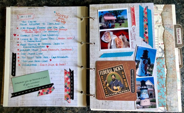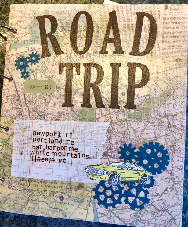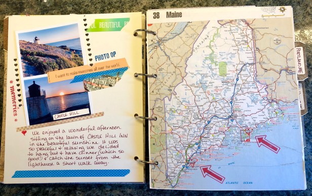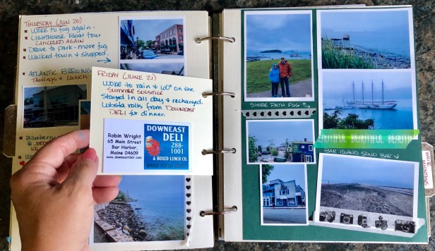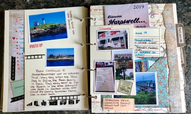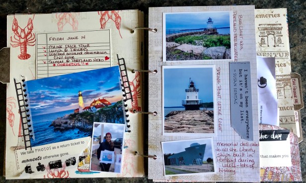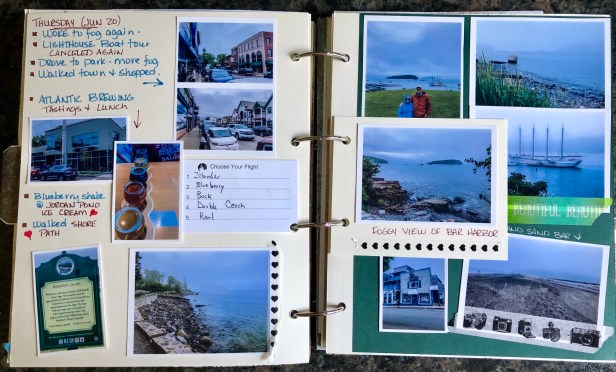 I used to be an avid scrapbooker, but it’s been probably 15 years (except for the premade baby books for the grand babies) since I’ve actually scrapbooked. Even though I have not scrapped our vacations over the years, I was dedicated to journaling them to preserve the memories. Manila envelopes would become the homes of collected paraphernalia and printed journaling labeled with the place and date. I decided before we took our Maine trip I wanted to do something different for the memories. Initially my thought was to use a “smashbook” – remember when they were all the rage? So I went shopping, only to discover I had missed that boat. I guess “smashbooks” aren’t popular anymore – even Amazon only had one. Disappointed I came home and got the wheels turning. Pinterest was my first stop and sadly I didn’t see much of what I was looking for. I guess I had something more specific in mind and I wasn’t finding inspiration there. YouTube was another resource and I watched video after video, still not getting ideas matching what was in my head. Eventually I accepted I would have to simply make my own “smashbook” and got busy.
