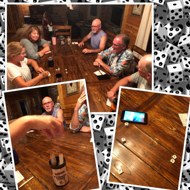 Tuesday morning the guys met John and Cindy at the golf course and Cindy drove to the cabin. Us gals crafted during the day while the guys golfed. Chef DE fixed us a delicious dinner and then we played Yahtzee until bed. It’s amazing how much fun one can have with a few dice sitting around a table with friends. We love our game nights.