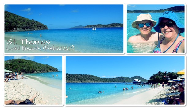We grabbed a taxi to Coki Point Beach this morning. Coki is in a little cove with a reef on either side that’s home to lots of fish so it’s great walk into the water and snorkel place. We didn’t snorkel at all on our last cruise so we were really looking forward to it this time. There are little bars and beach service but since it was Sunday some of them were closed and the selection was more limited. There was a local family sitting behind us burning joints most of the day. It was bad. Getting a whiff every now and then is one thing. But nearly constantly? (I told a friend about this and she said, “And you got that for free!!” LOL – different perspectives.) We actually ended up leaving early because I was just over it.