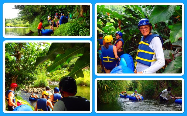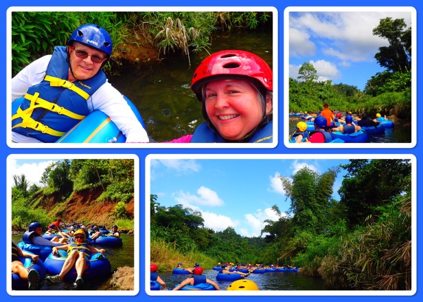 We decided to do something different this time on Dominica. There was a river tubing excursion through the ship that caught our eye. (We typically don’t book excursions through the ship simply because there are always so many people. It’s very impersonal. But when you have a lot of onboard credit you may as well – so we did.) There were at least five vans filled with ten people each taking us to our destination. It was about an hour drive. On a mostly really winding S curve road. Our driver was awesome though (most of the time they are). By the time we arrived at the river we all needed some ginger for our stomachs.