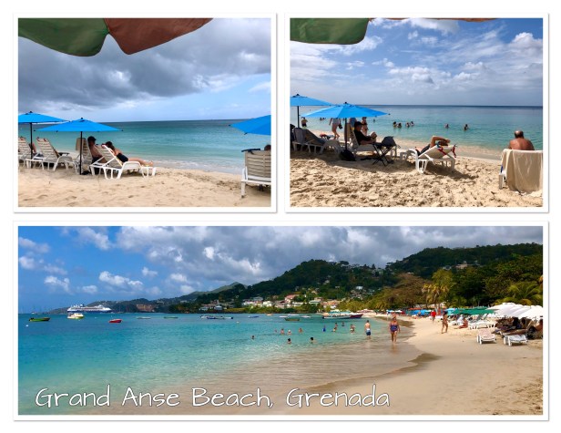 Grand Anse Beach – this morning started dark and cloudy but since we know how quickly the weather changes down here on the islands it did not deter us from our beach plans. After our back to back 9am meeting this morning we picked up our bags and headed to the water taxi. We’ve done this several times so it’s quite comical watching the horror and confusion of first timers. They pack you in like sardines on these little shuttle boats. We’re used to it by now – newbies aren’t. And Lord have mercy some people are drama kings/queens. One lady this morning kept talking about throwing up if they put any more people on the boat. Quite a few would only pay for the one way shuttle instead of round trip. Hysterical. Also hysterical watching all the people pay for the one way trip back to the ship in the afternoon. Honestly, this is what these guys do – all day, every day. It’s their livelihood. They aren’t going to jeopardize that. People need to just take a chill pill. (The first time we went to Grand Anse Beach they guy started our water taxi by hot wiring it. #truth)