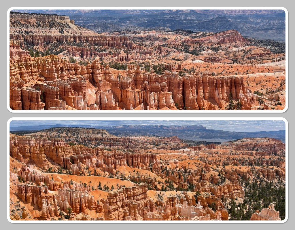 It’s been ten years since we’ve been here and it’s every bit as beautiful as we remembered. Maybe more. We took our time getting moving in the morning, grabbed some breakfast in the room and trying to give ourselves some time to acclimate to 8,000 feet. Coming from 1,900 feet it’s a real adjustment. We are huffing and puffing with the best of ‘em. But the views from the rim in the morning? Incredible. After walking the rim and taking all kinds of images, we got some lunch in the lodge. It was pretty much what we expected – mediocre. I ordered the soup of the day – chicken and dumplins’. Flavor was good, but there was no substance – I have no idea where the chicken or the dumplins’ were. It was just a bowl of gravy for the most part. Bob got a grilled chicken sandwich that was okay. So we’re opting for noshing in our room for dinner tonight. No point in paying expensive prices for meals that are mediocre.