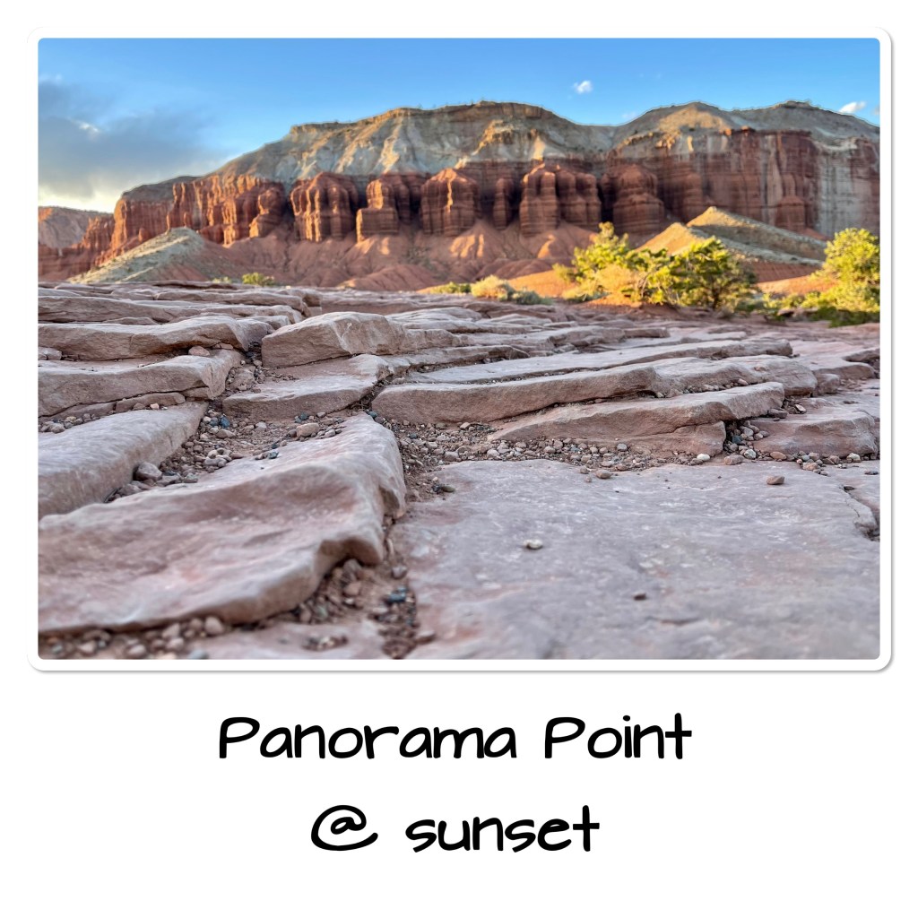 Panorama Point in Capital Reef is supposed to be a great place to see the sun set. We hopped back in the car around 7:30 and drove the less than 10 minutes there for an 8:22pm sunset. As expected there were some cars already ahead of us. But from what we could see, it wasn’t going to be what we were hoping. The only way you can get a really good picture is if the sky, clouds and color all come together in magic. Tonight it did not. Thankfully, we were only 10 minutes from our room so no big deal. But I did get this cool shot while waiting …