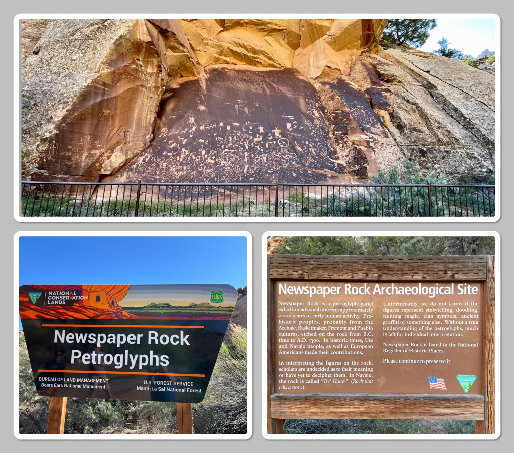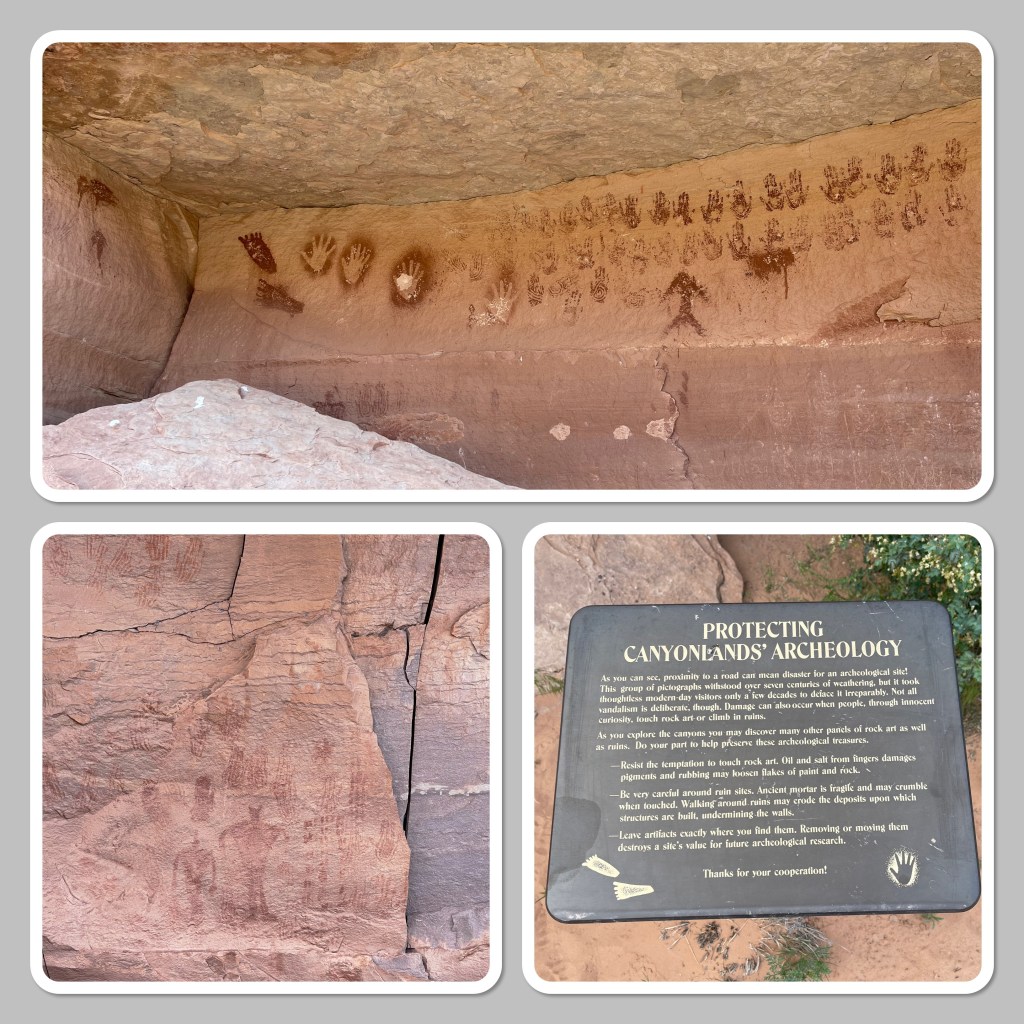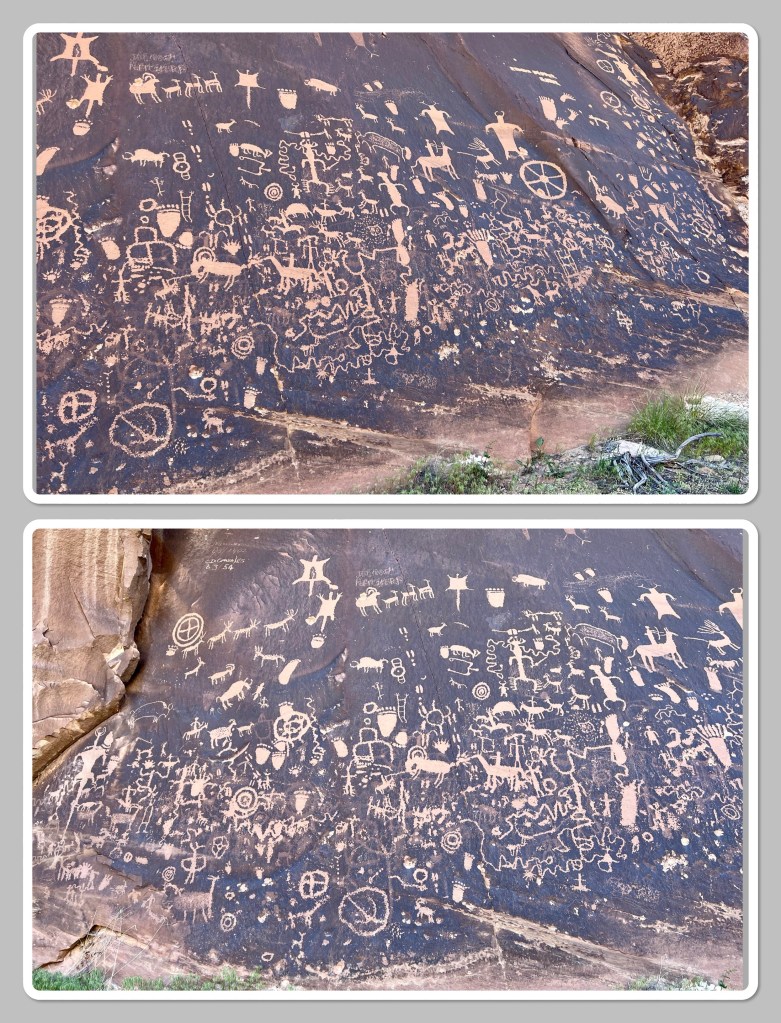 Charlotte has been with the company for 6 years now and it is evident she loves her job. As an Army vet she has the discipline and focus to navigate the “roads” (and I use that word loosely) leading to our hike. Our first stop was Newspaper Rock right outside of the park. This is a petroglyph panel of “signatures” of ancient peoples spanning a 2,000 year period. There are even layers of these images and who knows how old those are. There are theories as to the meanings but no one really knows. Regardless, they’re really cool to see in person.