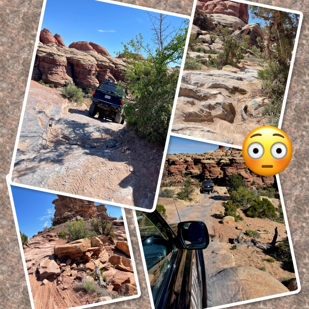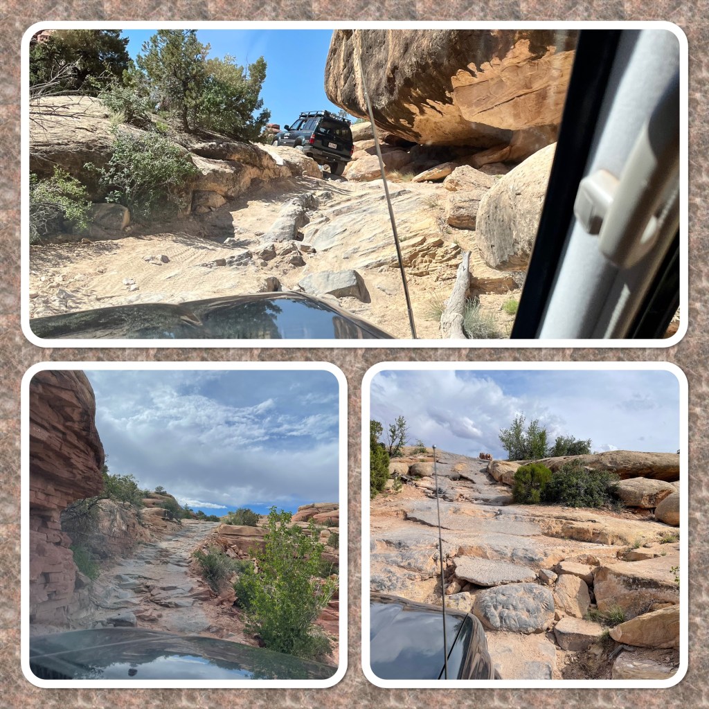 According to the Visitors Guide you receive when entering the park, Elephant Hill is “one of the most technical four-wheel-drive roads in Utah. Steep grades, lose rock, stair-step drops, tight turns and tricky backing.” I’m just glad we didn’t read this beforehand. We were about to get a front row seat to this 3D real life adventure and the reason for signing that waiver saying they were not held liable if we died. Talk about baptism by fire! I will let the photos and videos speak for themselves.