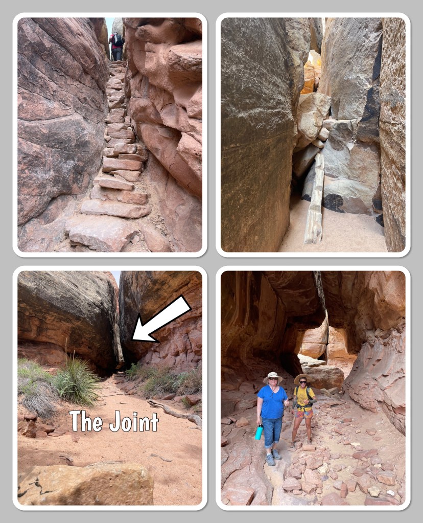 We had a wonderful lunch prepared for us at Devils Kitchen before starting the Joint Trail hike. Buzz was the guide in the other vehicle and he had three ladies in his group. We all had lunch together and enjoyed visiting and learning about each other. Those three have been friends for 50 years and meet once a year to spend time together. Two of the three are psychologists and the other one is a psychiatrist. Boy could I have given them some material to work with!! LOL