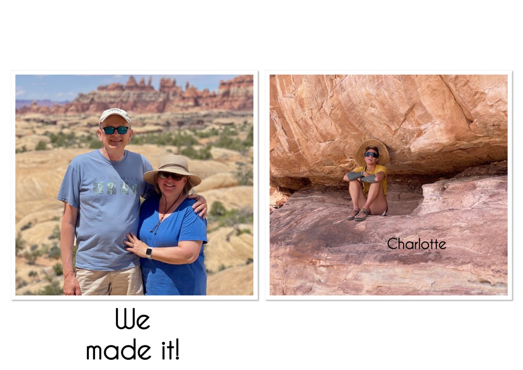 After resting and taking in that view it was time to head back. I had already been thinking about that while on the way up … what goes up must come down. Charlotte was a Godsend. She showed us where to step, use our hands and bodies to lean certain ways for leverage and when all else fails … scoot down on our butts – which I did a lot of.